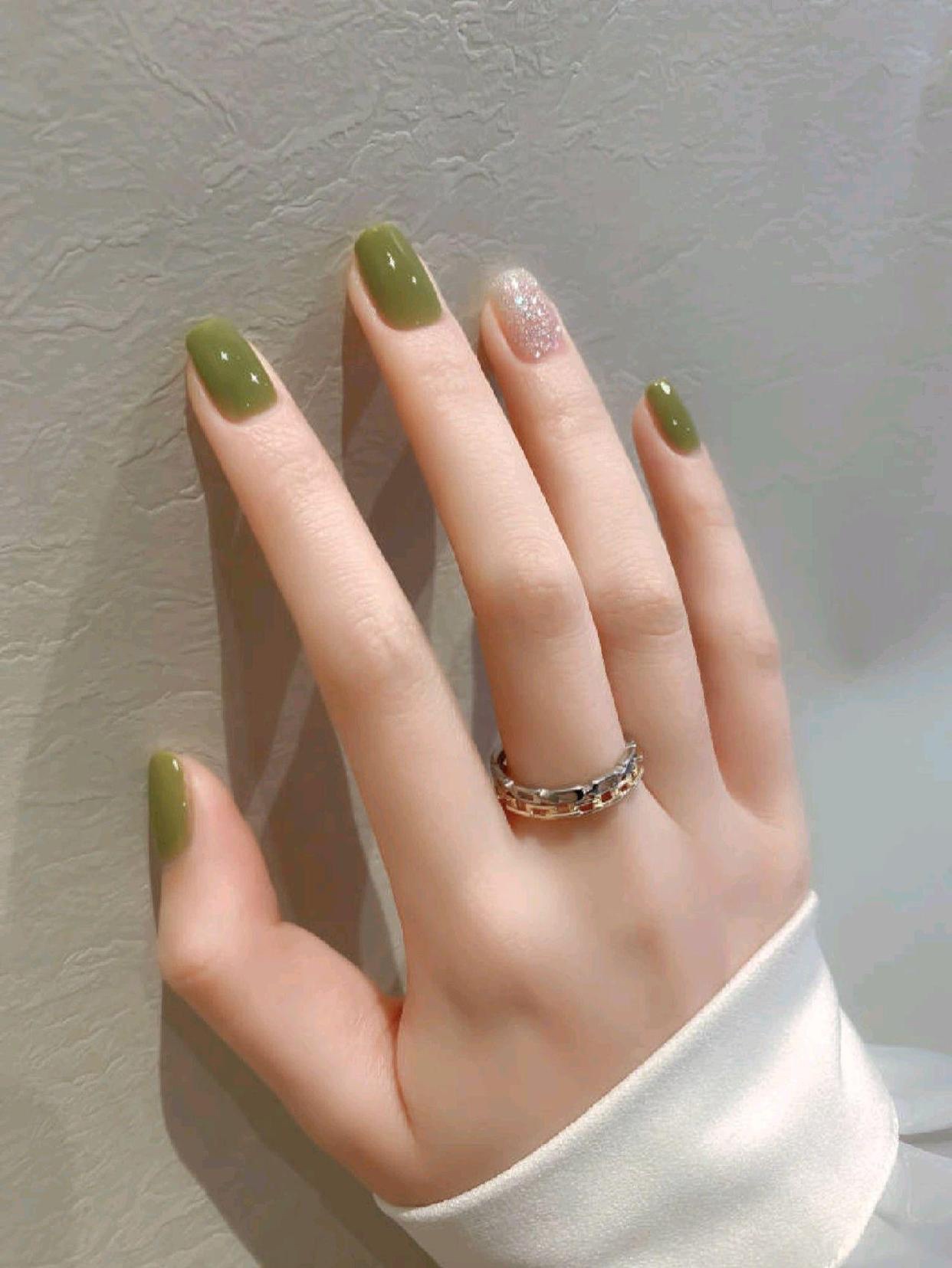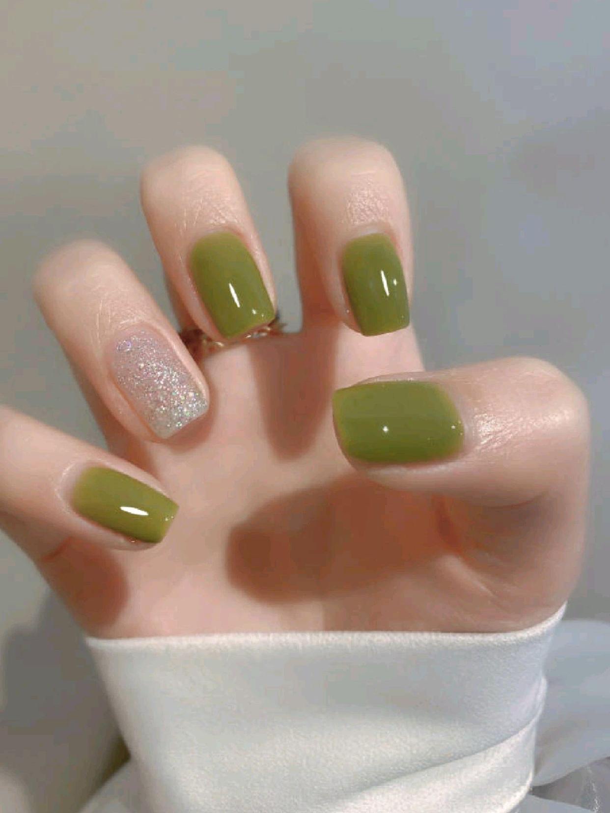 2023显白绿色美甲🌿亮片清新高级感美甲超显白绿色美甲🌿-美图社区-美图秀秀