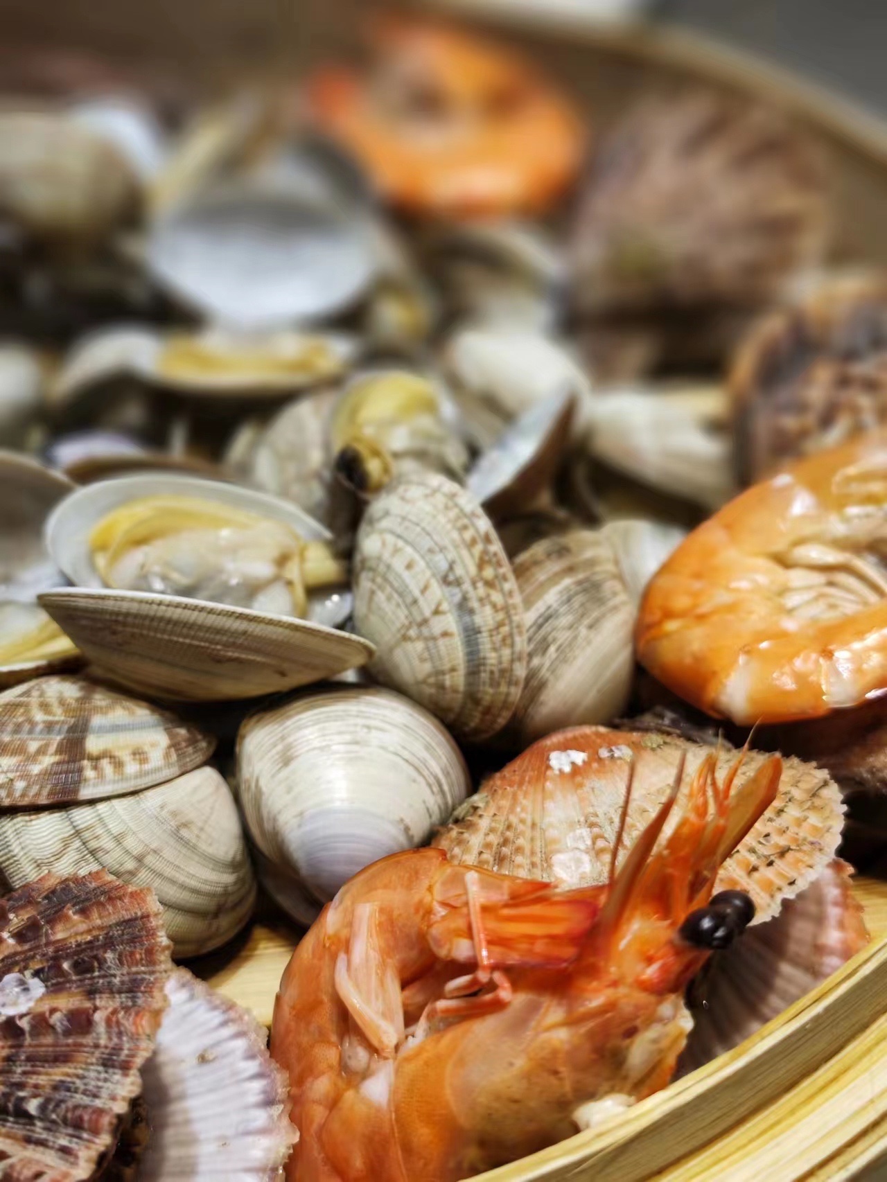 每次掀开锅盖的一刻,都是让人开心的😄❗️招牌大黄鱼 🐟鲜嫩爽口,洁白少刺,入口清鲜的味道在唇齿间蔓延,实在是人间美味。海白虾 🦐蒸熟后红彤彤的,个大饱满鲜嫩可口~生蚝 🦪个大肥美鲜嫩多汁,粘上酱汁一口一个真是享受~