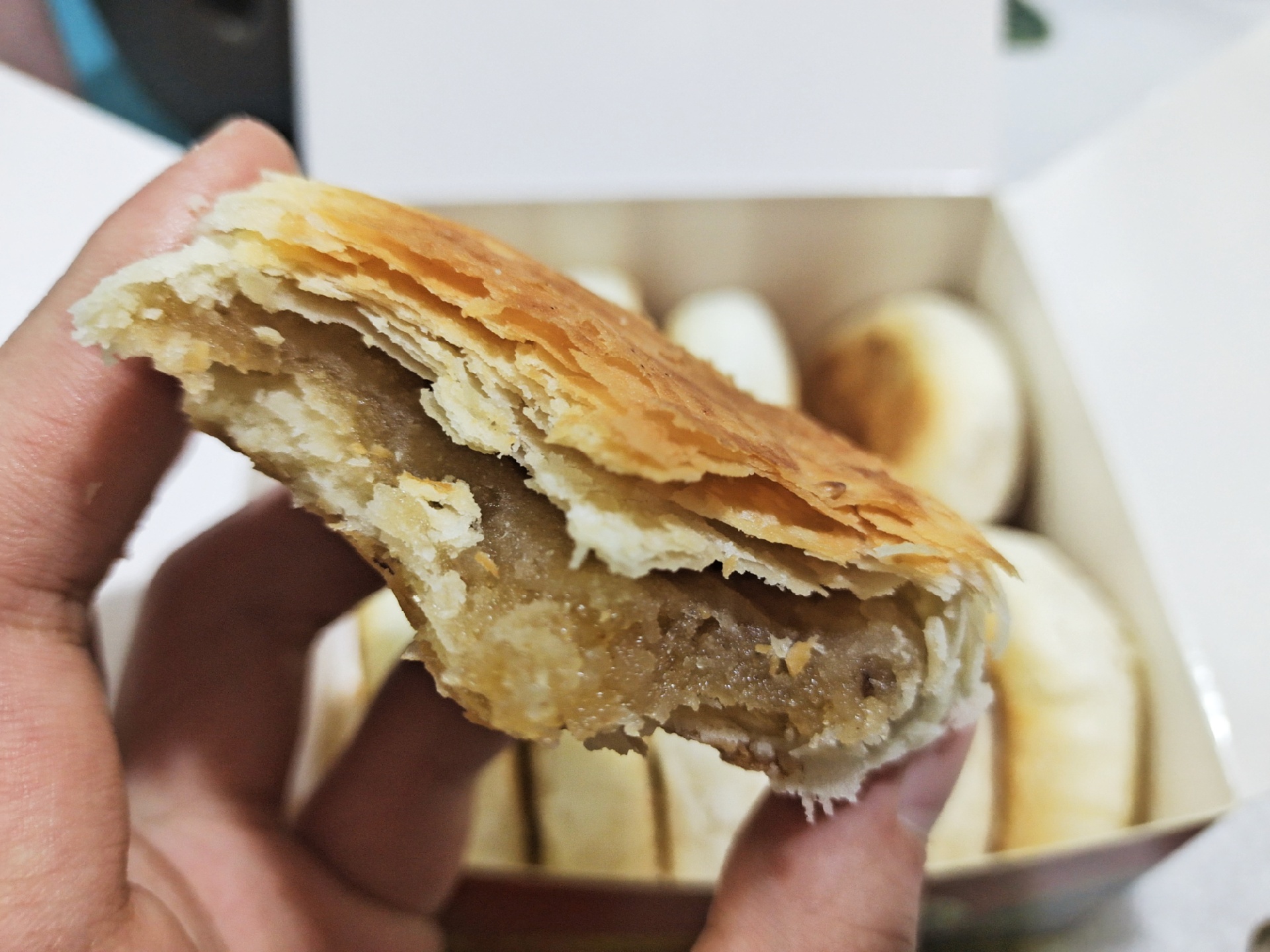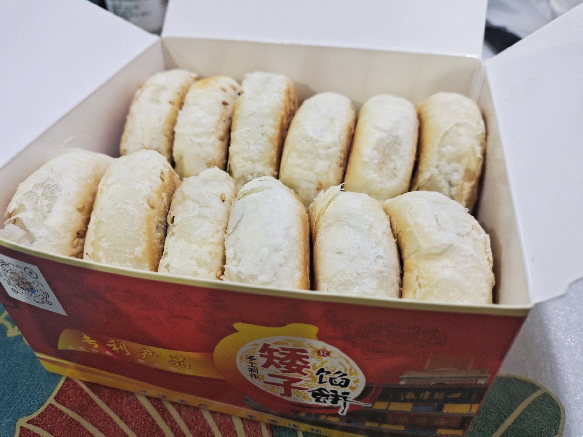 矮子馅饼,一家多年老店,生意一直很好,口味种类也很多,饼皮很酥但不干,馅料是偏软的,有栗子馅、椒盐馅、玫瑰馅...😂个人比较推荐海苔馅和黑芝麻馅,总之咸甜口都有,赶紧自己去试吧!(地址:呼童街64号)
