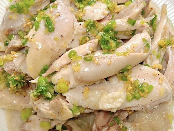 4.最后倒入调好的葱姜酱汁,一起抓拌均匀,即可开吃。