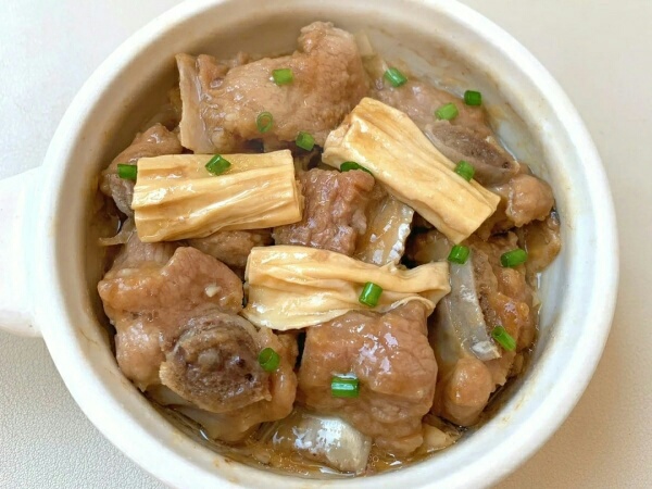 食材准备:腐竹、排骨、香菇、姜丝、葱段、葱花。