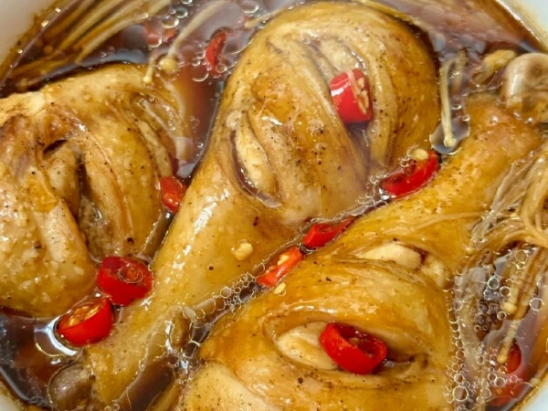 食材准备:金针菇、大鸡腿、小米辣、葱段、姜丝。