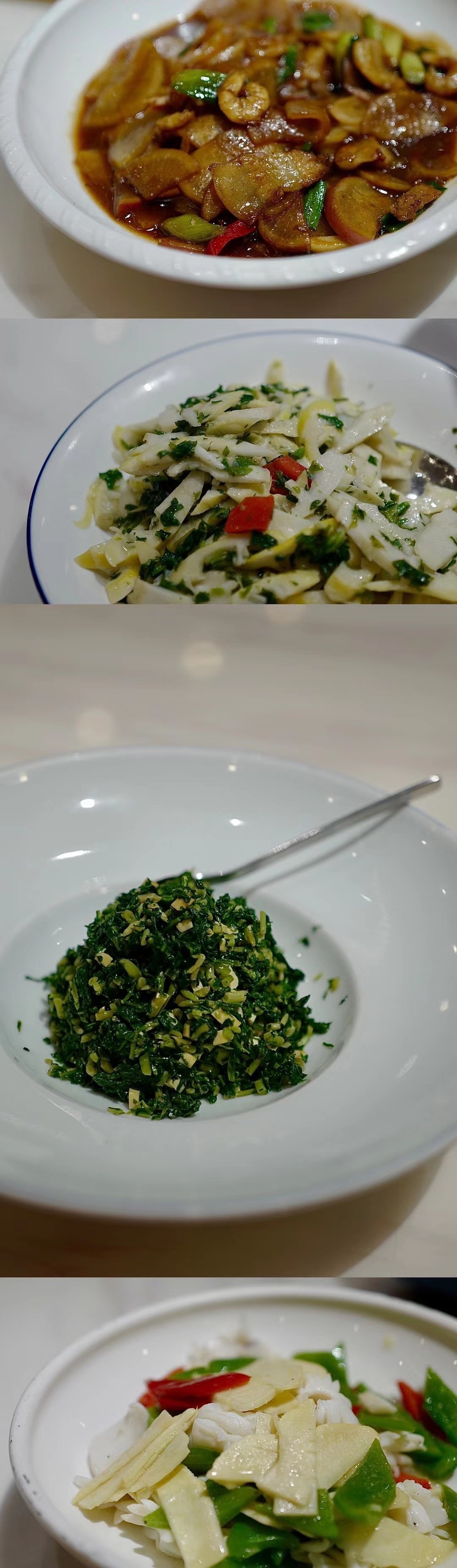趁着春天野菜冒头,鲜透山野,江南沿岸终于有了万物复苏应该有的样子。菜蕻糯的时候,也就十天,炒最好的春笋尖,当然鲜。
