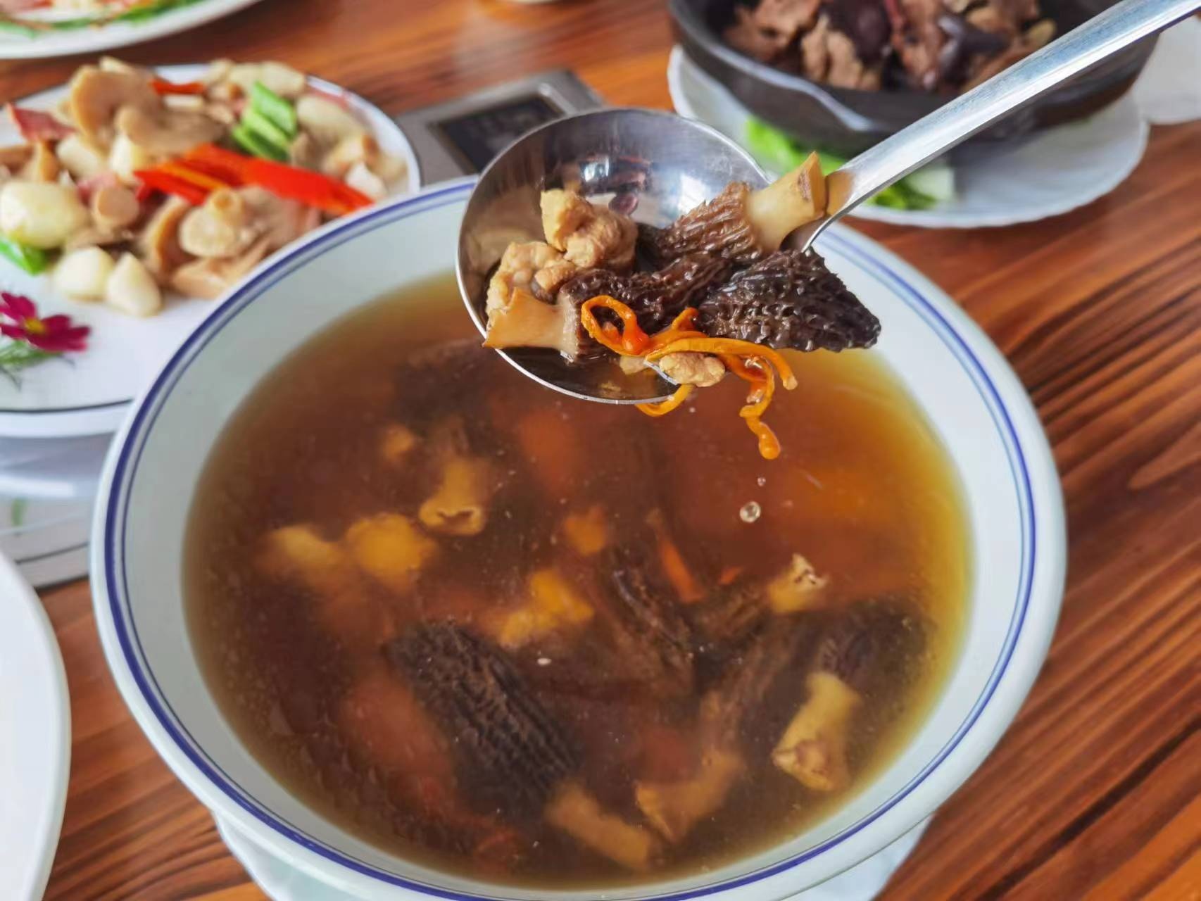 凉拌龙爪菌、白参煎蛋、羊肚菌炖排骨都很赞!