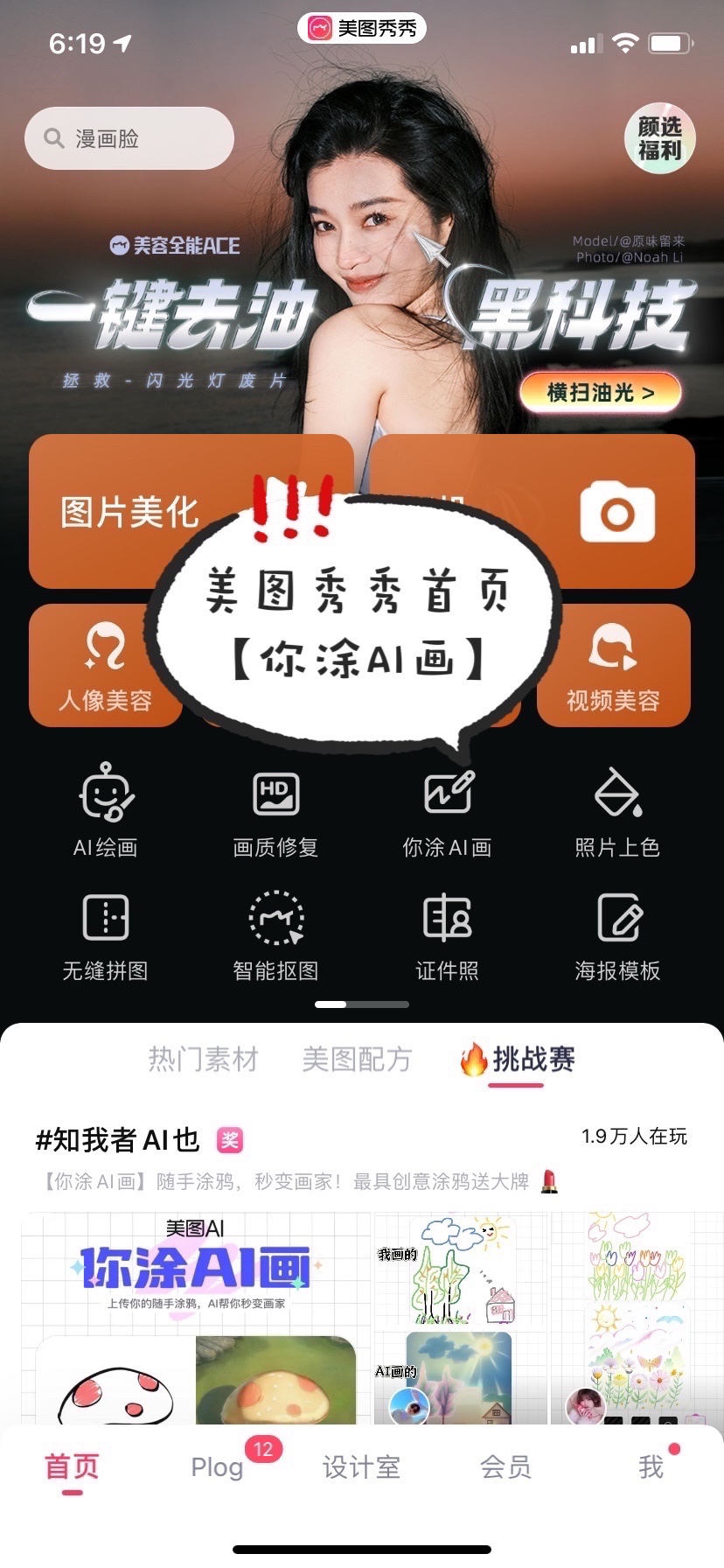 美图秀秀首页新出了一个好玩的东西【你涂Al画】