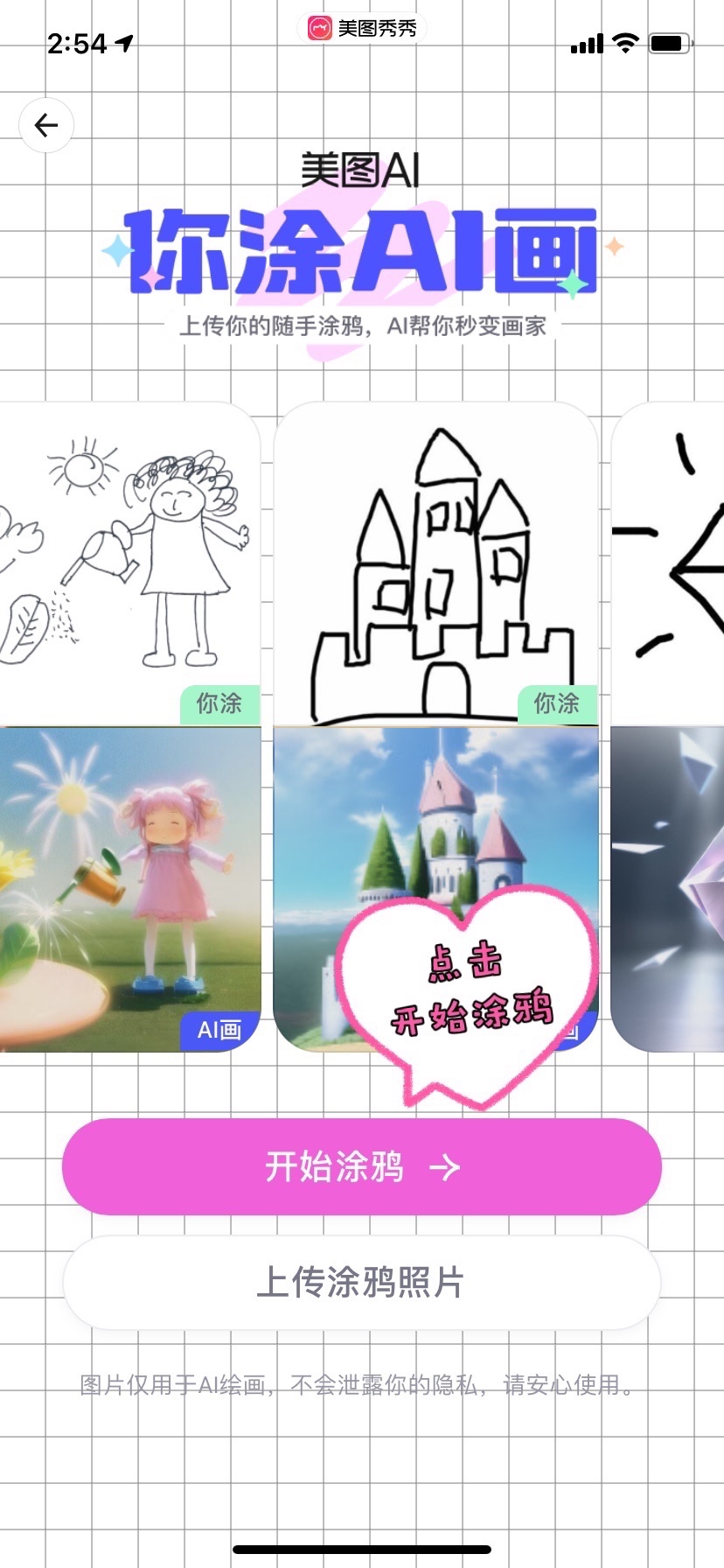 大家点击『开始涂鸦』进行自己的创作就可以获得AI无限畅想的创作哦。