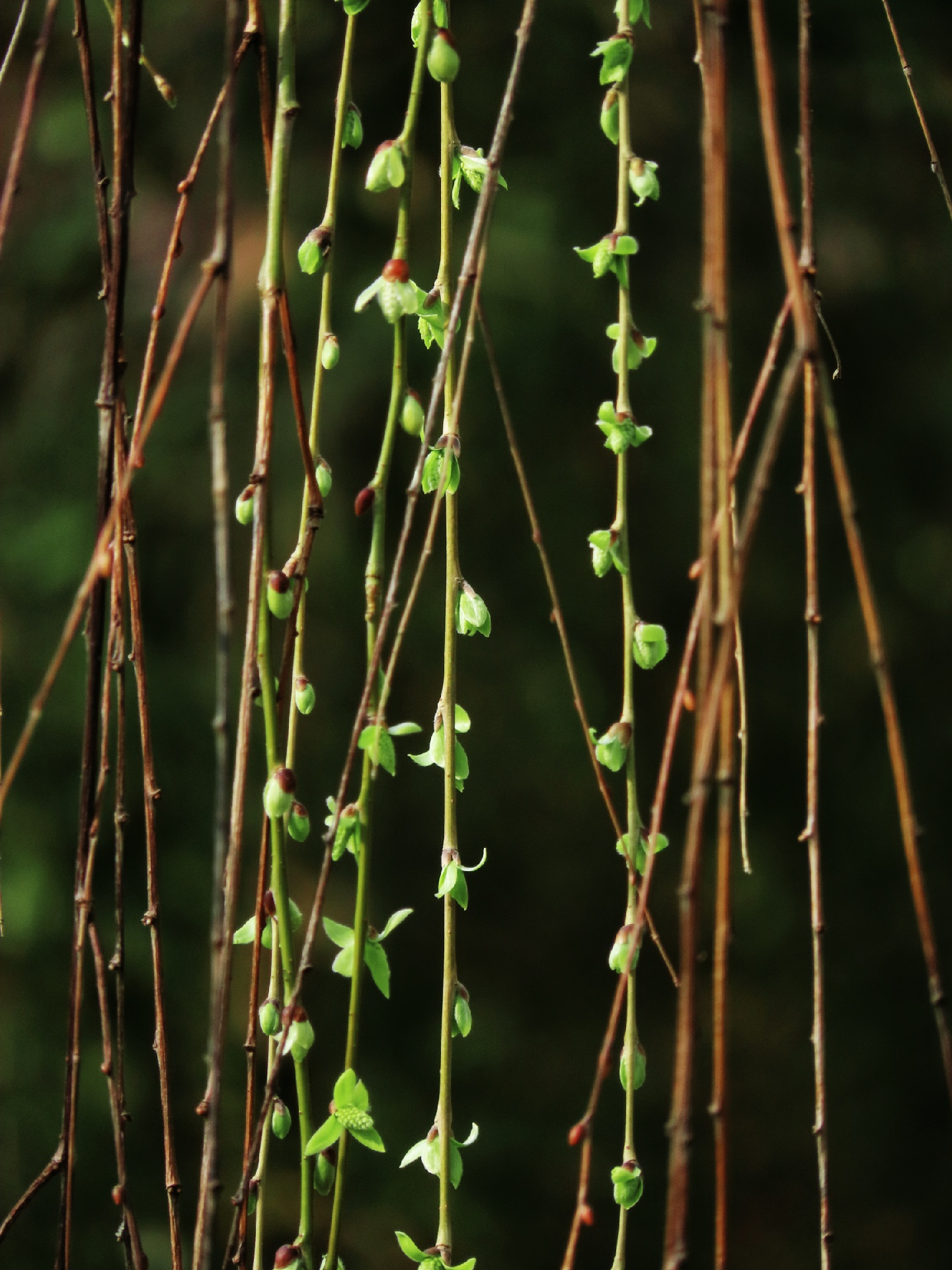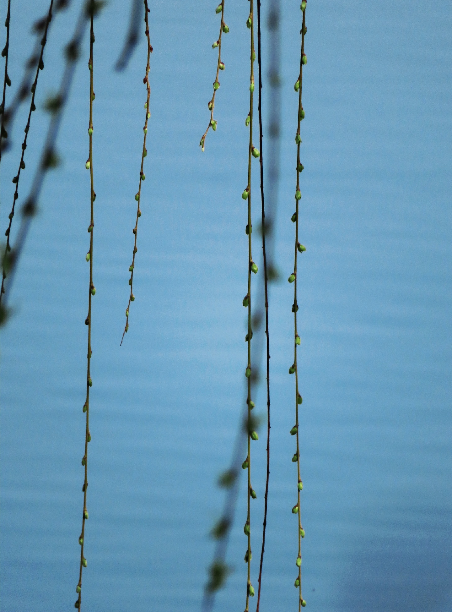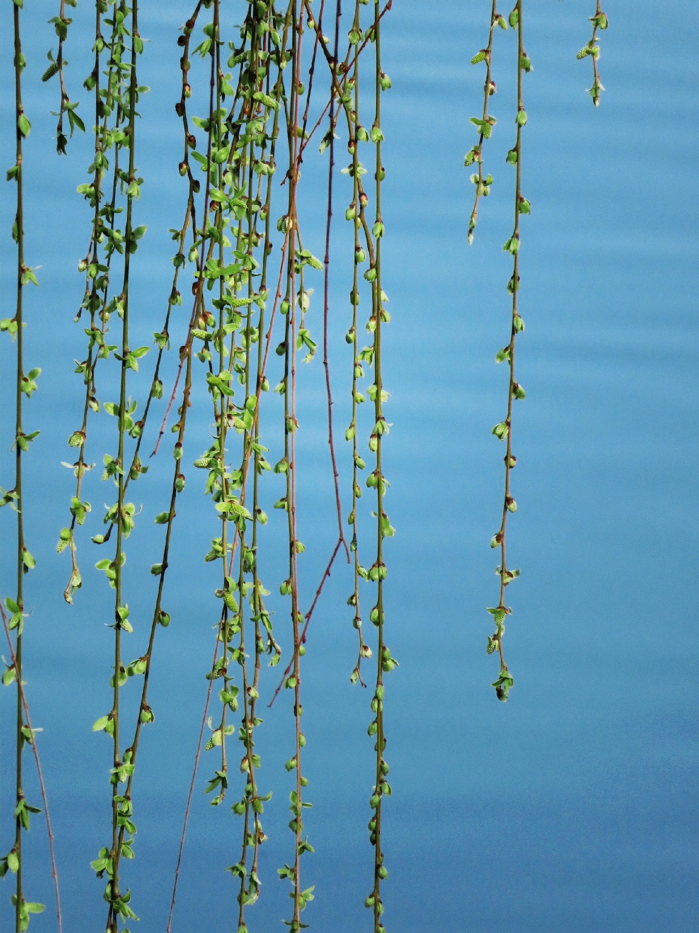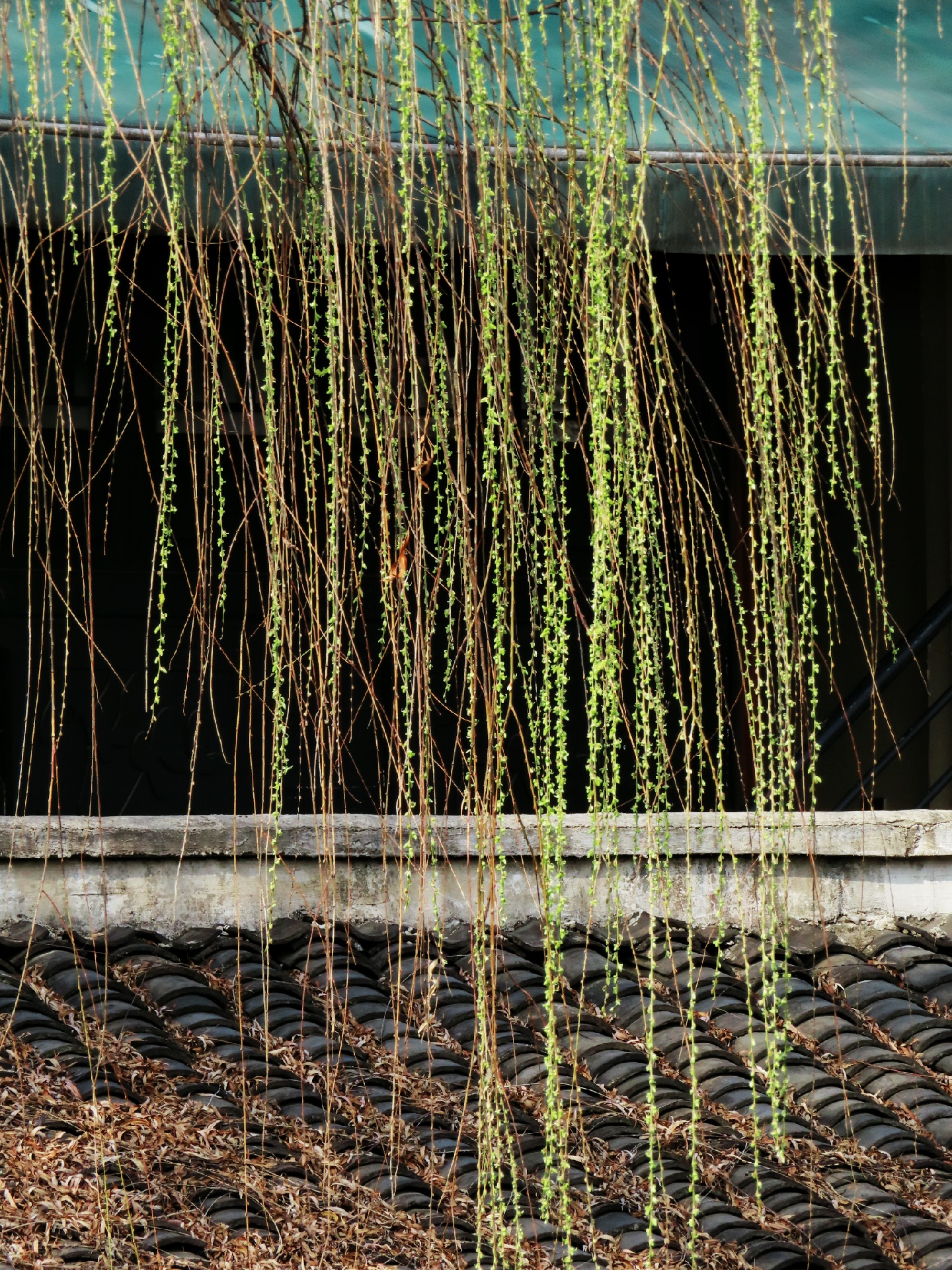 🌱春天的柳枝发芽了,又细又长。翠绿的柳条像纯情的少女,微风吹拂,婀娜多姿,翩翩起舞,好养眼啊!