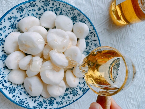 3、装盘,淋上适量的蜂蜜,简单的凉拌马蹄完成