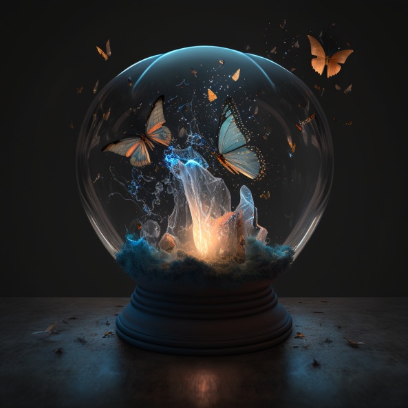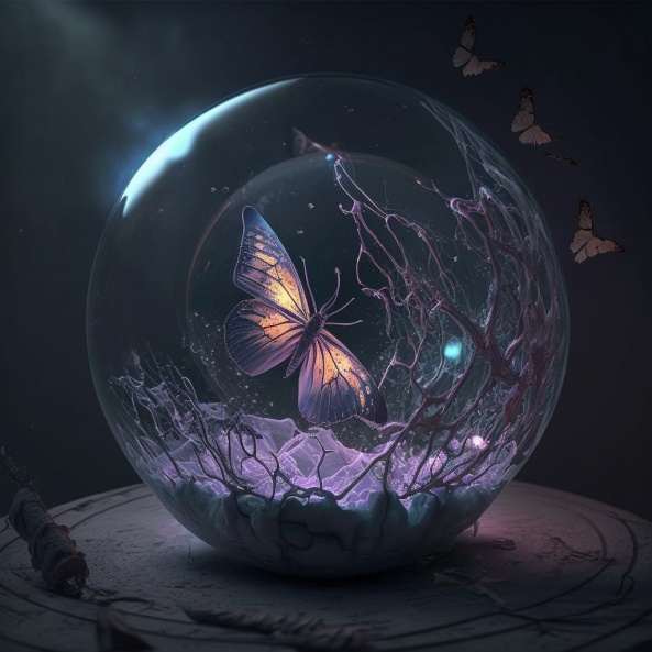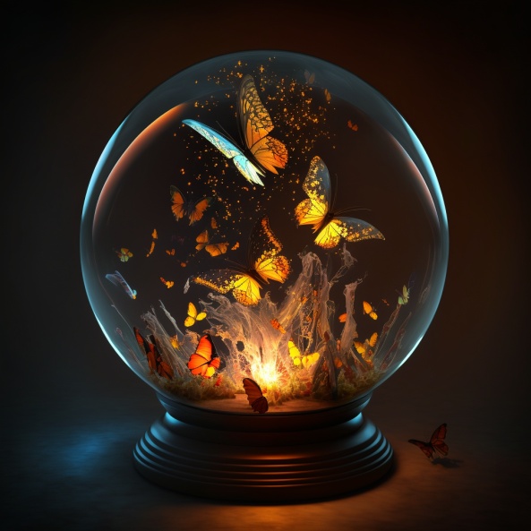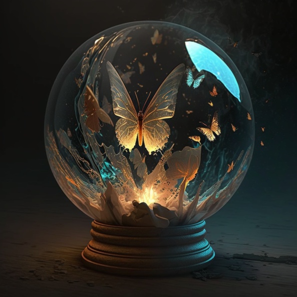 燃烧的蝴蝶在水晶球里飞舞,炽热的灵魂点亮微弱的光芒