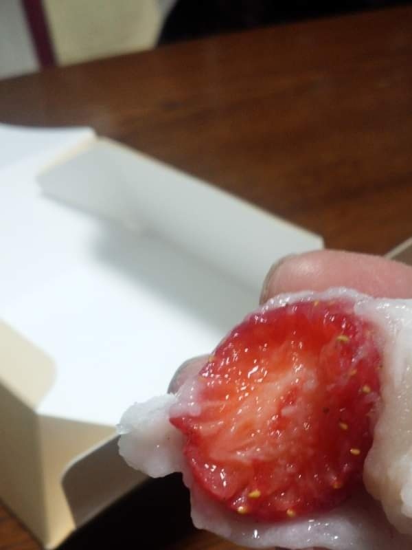 此外,「银座 甘乐」的草莓大福跟其他家的草莓大福不同的是~~除了大尺寸的草莓之外,内馅是采用白豆沙馅(一般店家大多是采用红豆),草莓品质好、内馅也讲究,白豆沙的豆子品种也是采用北海道产契约农家生产的「白手亡」,这是一种非常高级的和果子素材。 白豆沙馅甜甜的滋味,将又大又鲜嫩的草莓包覆着,一口咬下~~草莓酸甜的汁液配合上外面包覆的白豆沙馅,再结合最外面柔软的麻糬皮,真是美味极了!