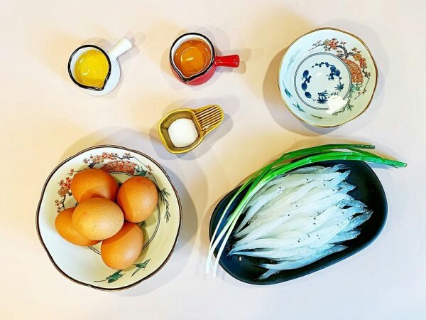 材料:银鱼180克,鸡蛋5个,料酒3勺,盐适量,葱适量,花生油3勺。