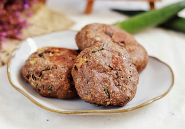 平底锅加少许油,取适量馅料放进锅内,再整理成小圆饼状,小火煎到两面变色熟透,这款主食就做好了。