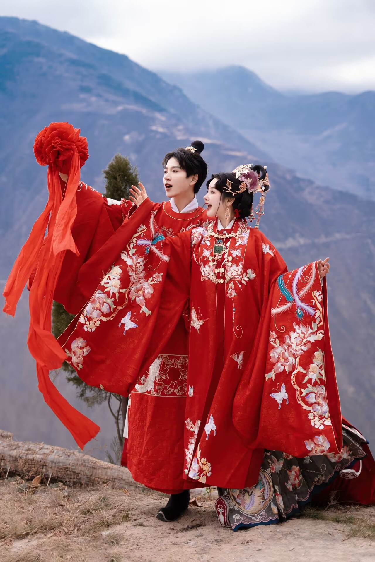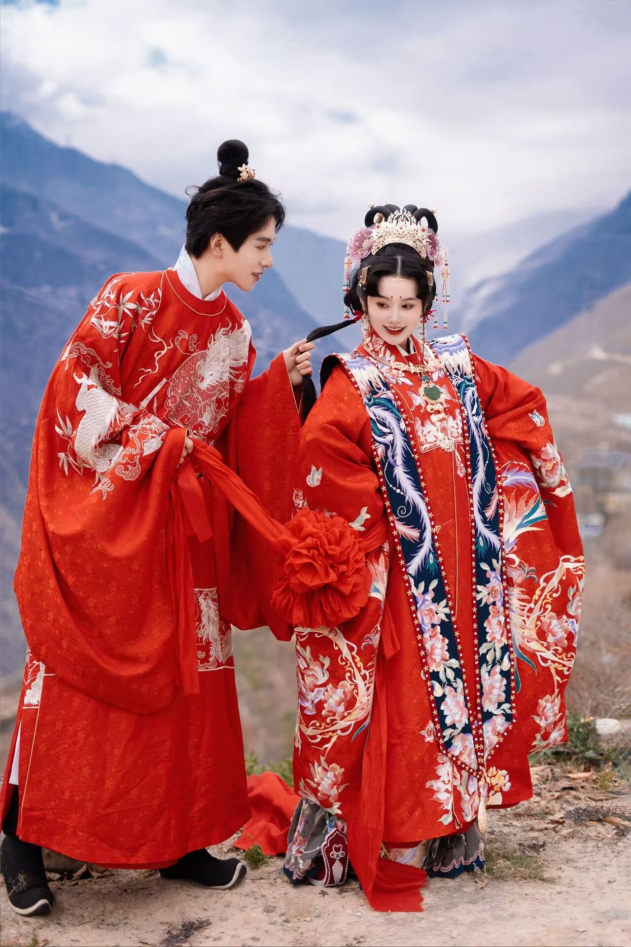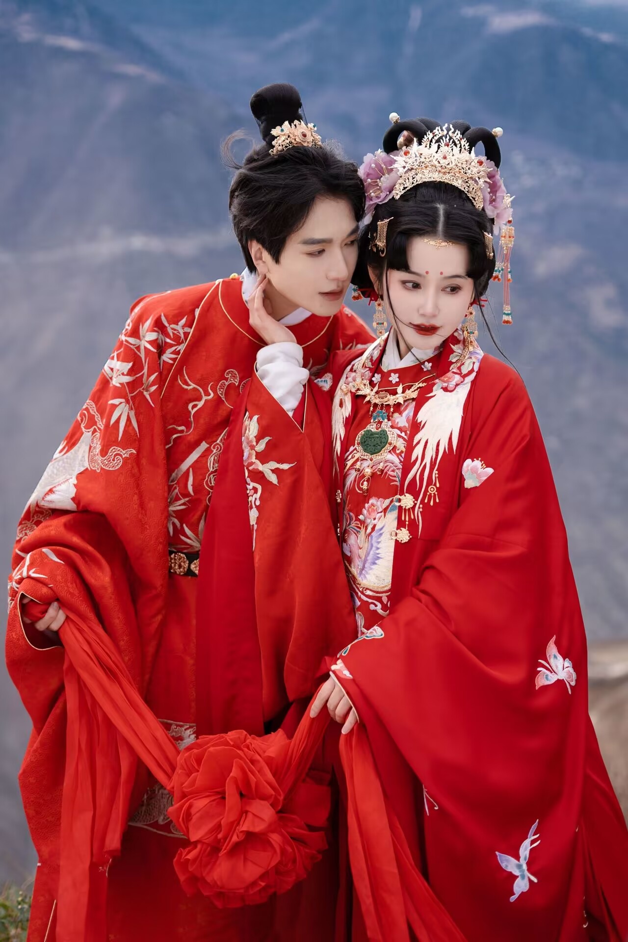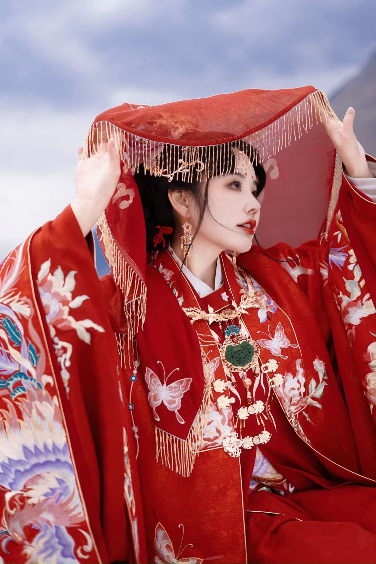 救命,真的好喜欢这种汉服婚服呀,汉式婚服永远都是最有魅力的!清欢纪家的这条真的绝了