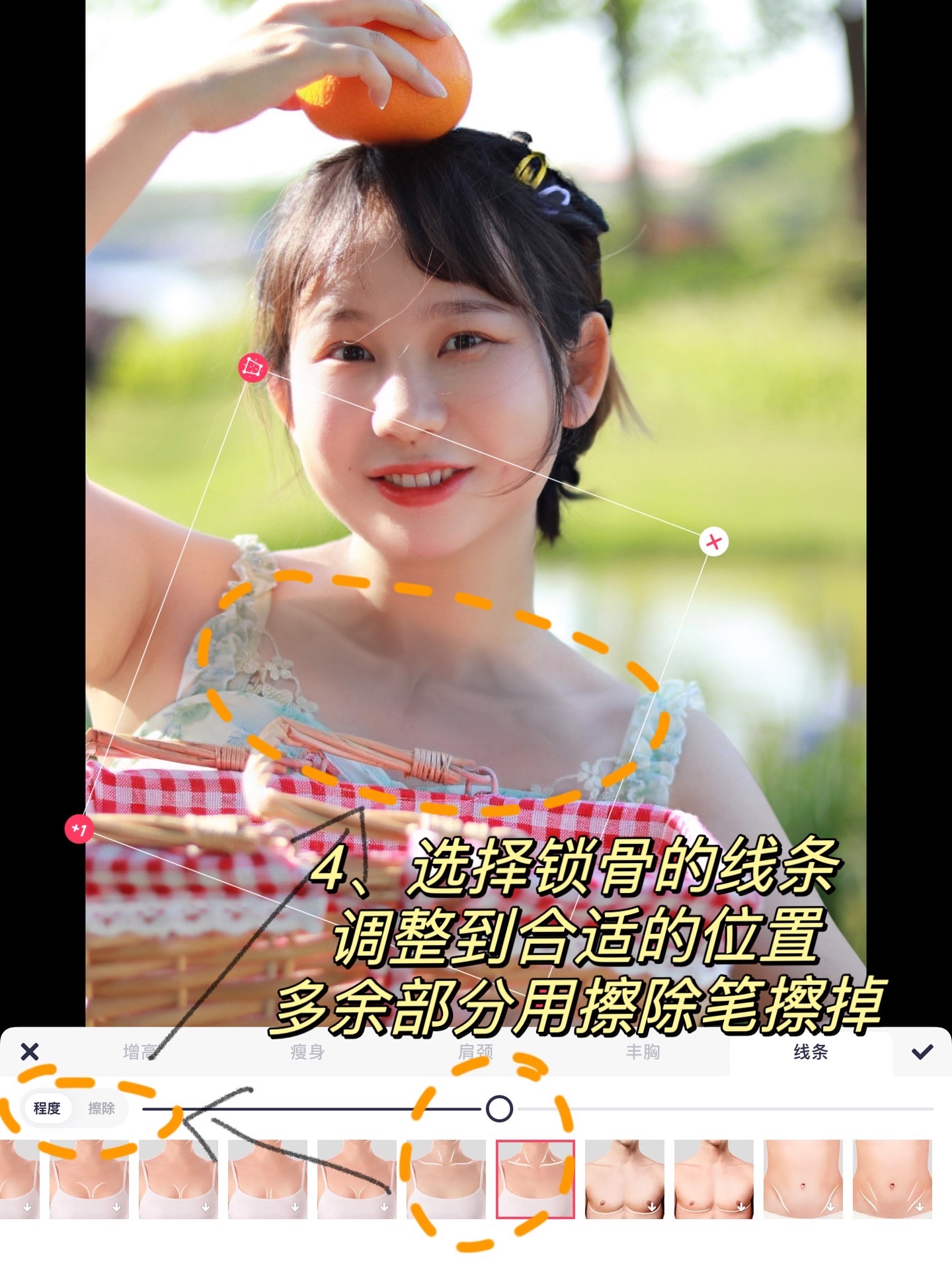 哈喽这里是小渔,今天教大家无中生有P锁骨!①用祛皱笔涂抹划掉-美图社区-美图秀秀
