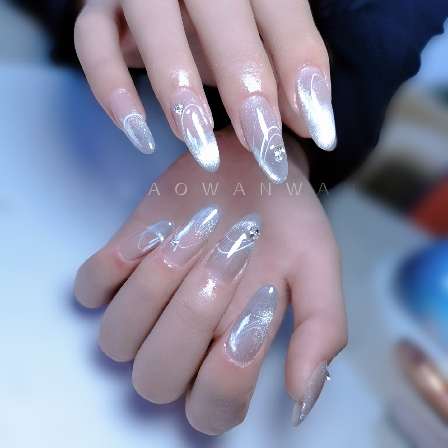 晶石猫眼美甲|春季显白美甲|高级感美甲