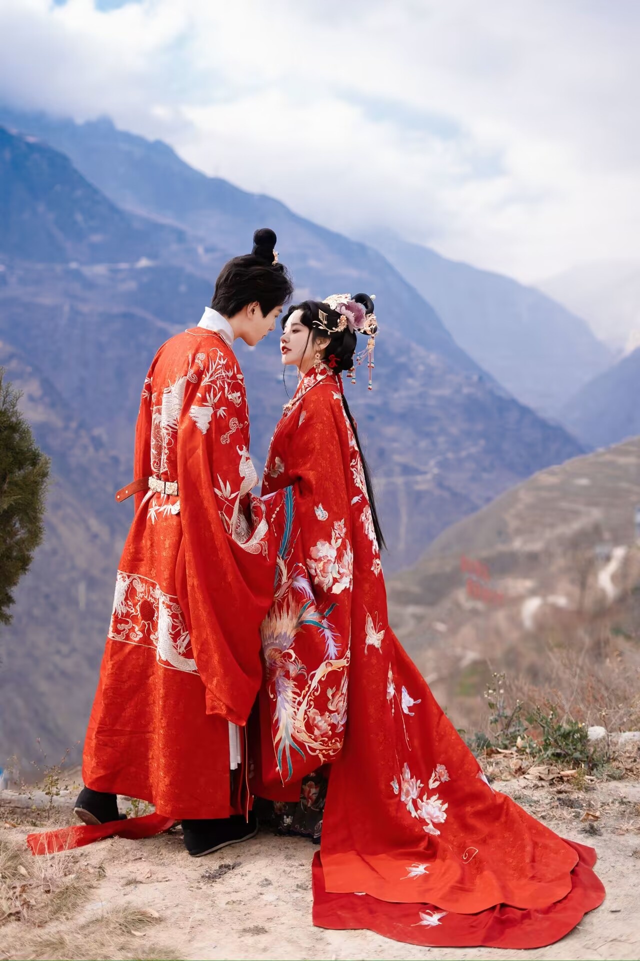 明制婚服还得看清欢纪家的,直接一整个米住了,以汉服作为婚服真的太有仪式感了,彷佛回到了三书六礼八抬大轿的那个时代