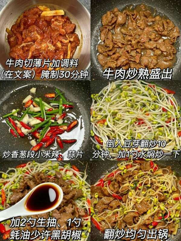 主要食材:豆芽菜,牛肉,小米辣,葱段,蒜片,蚝油,生抽,老抽,黑胡椒粉,淀粉,料酒,春天的黄豆芽更韭菜一样,正式饱满多汁水的时节,清脆爽口又弹牙,下饭那是一口接着一口。