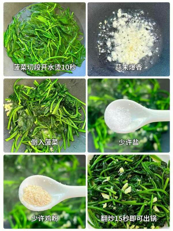 主要食材:菠菜,蒜末,盐,鸡粉,春天的蔬菜都是鲜嫩多汁的时候,菠菜有着独特的香气和口感,爱吃的人很多,唯一的难点就是清洗菠菜沙子的时候比较麻烦。