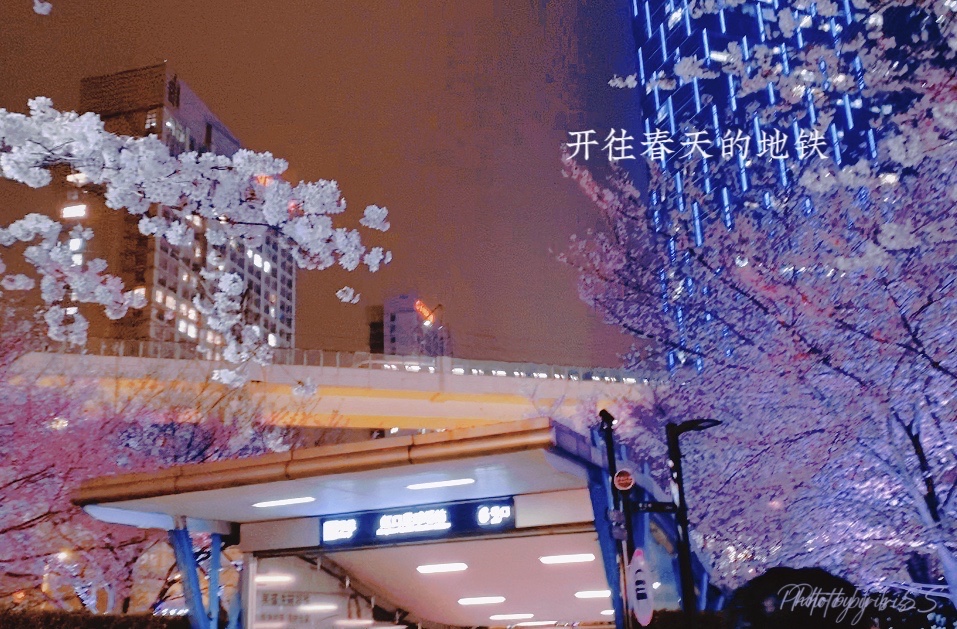 最美地铁站 虹口足球场六号口的樱花正是时候 夜景也这么美得令人屏息