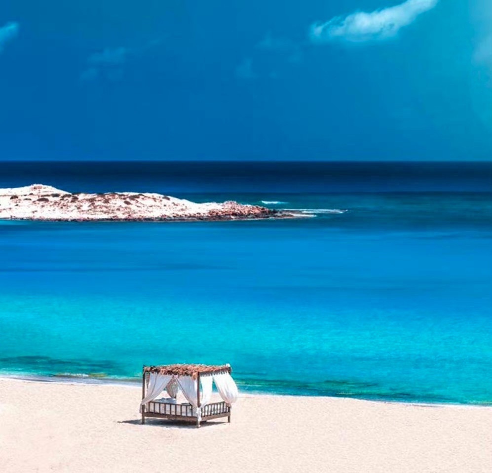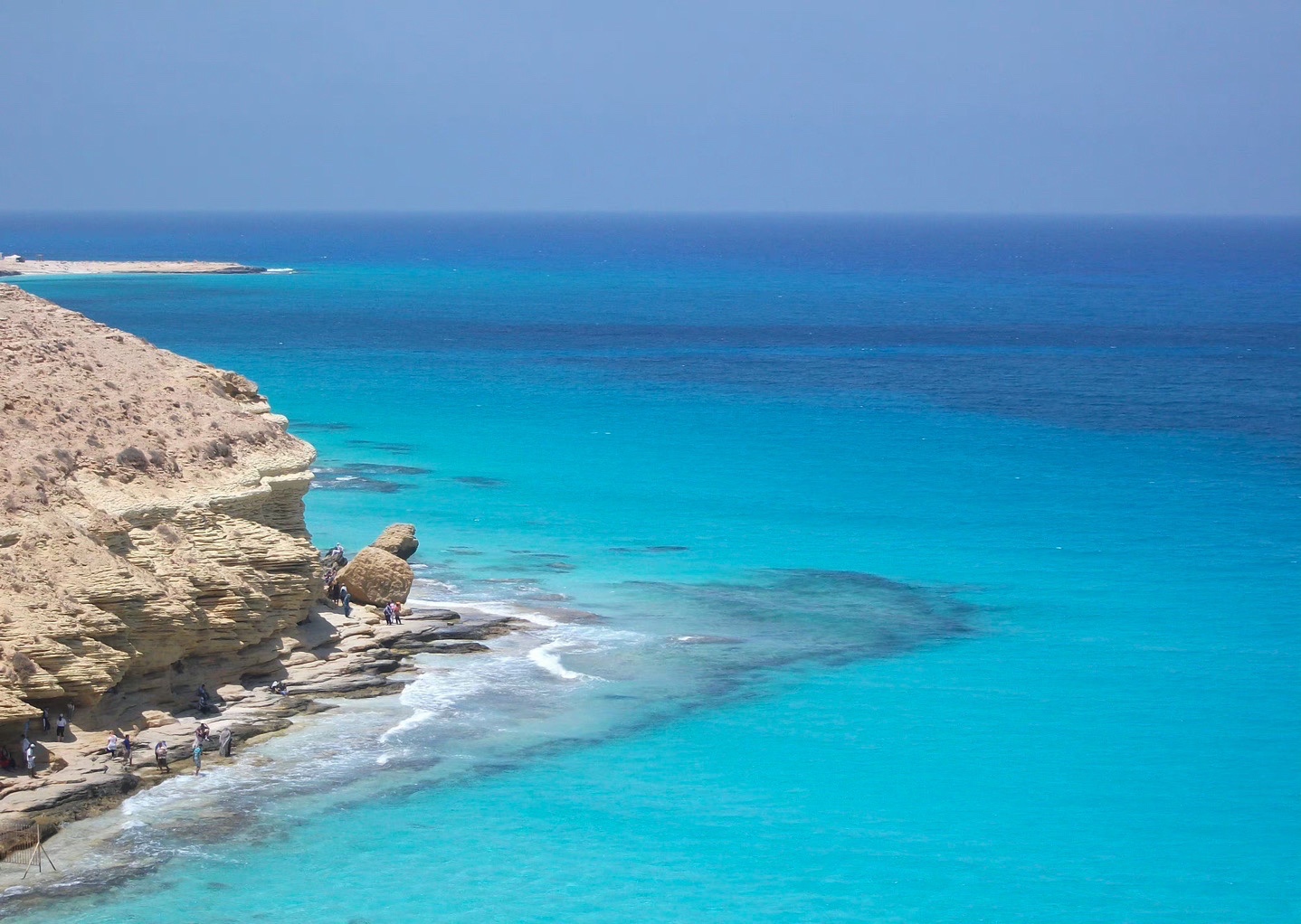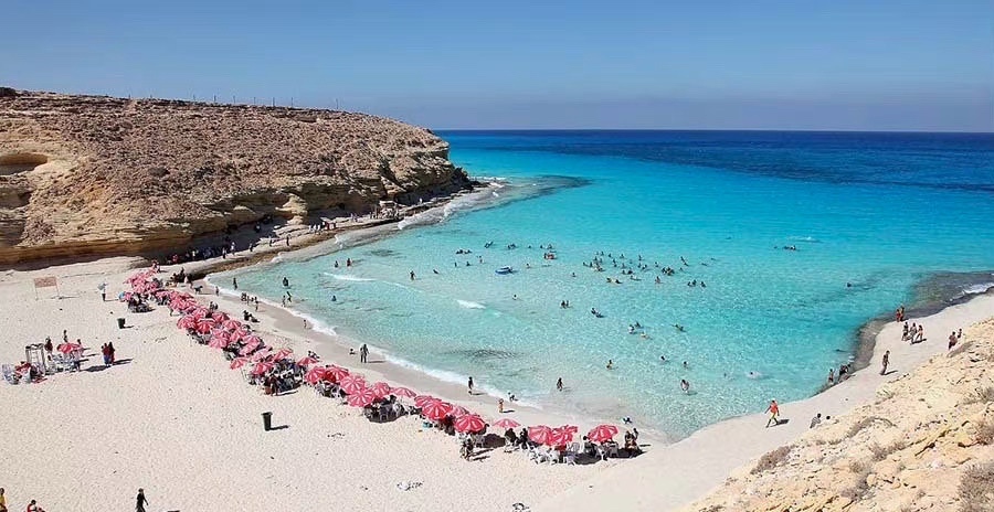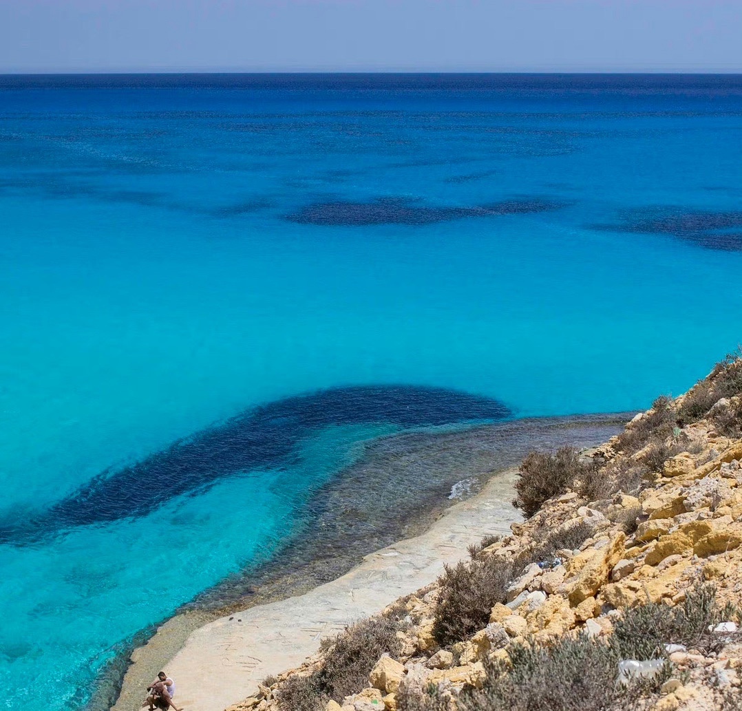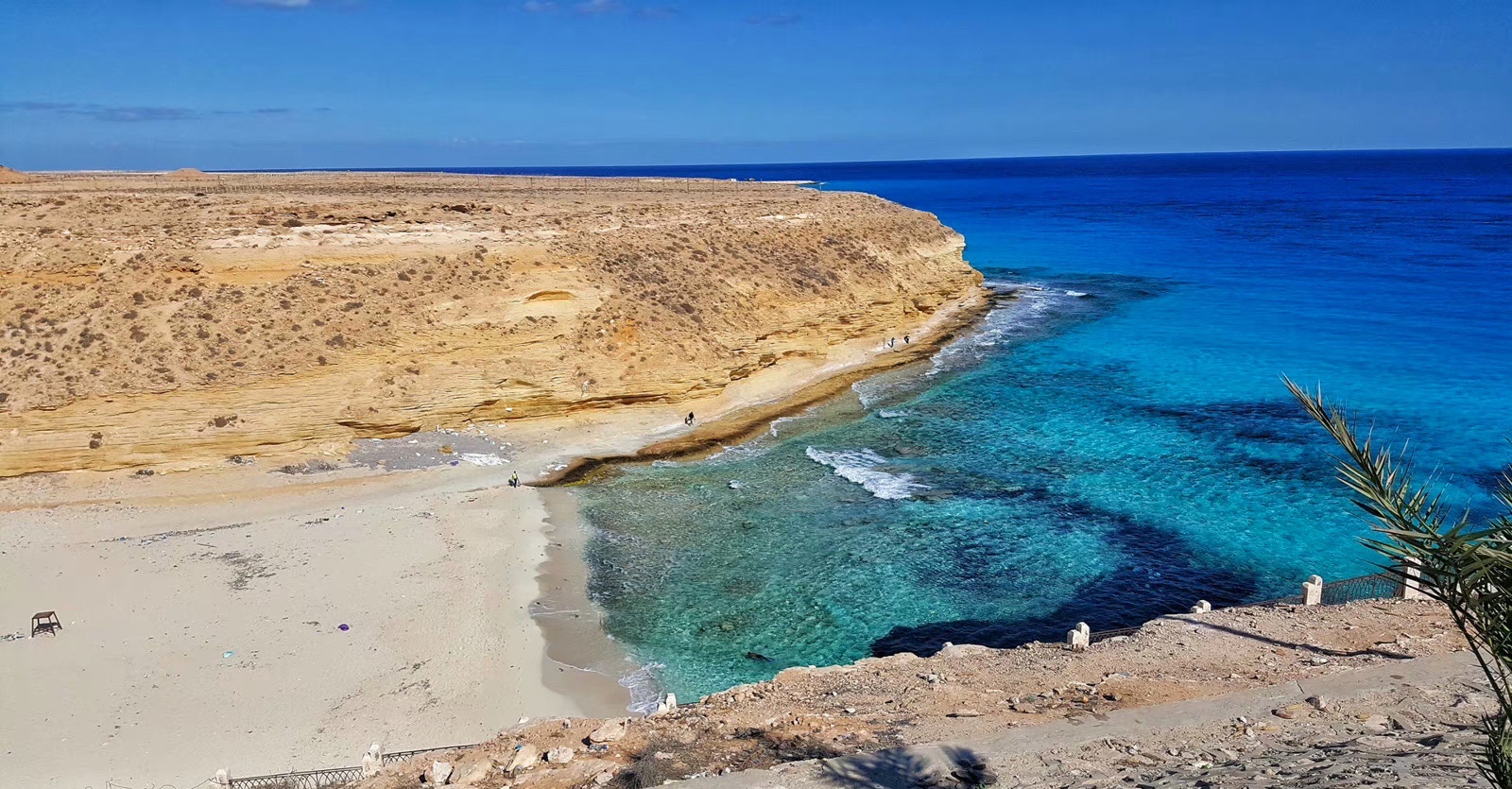 埃及 Marsa Matruh 马特鲁港位于一个巨大的环形海湾内 一排排岩石形成的天然防波堤保护着这个度假天堂 因海水深度不同 颜色从蓝色渐变为绿色 清澈透明 在细柔的白沙上牵手漫步 或随心所欲地躺着 都是快乐享受