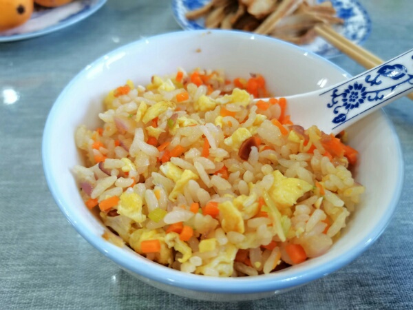 传统的炒米饭,一般放油都比较多,自己家做,尽量少放油才更健康。