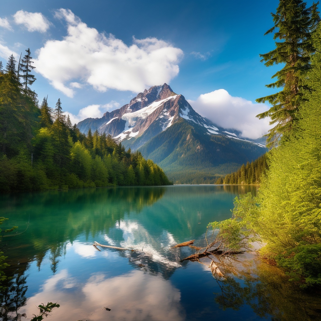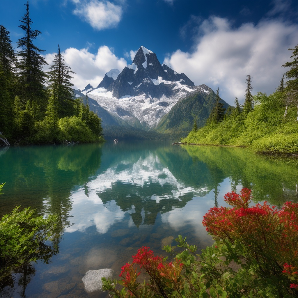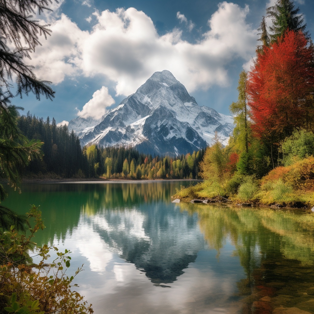 雪峰高耸入云端