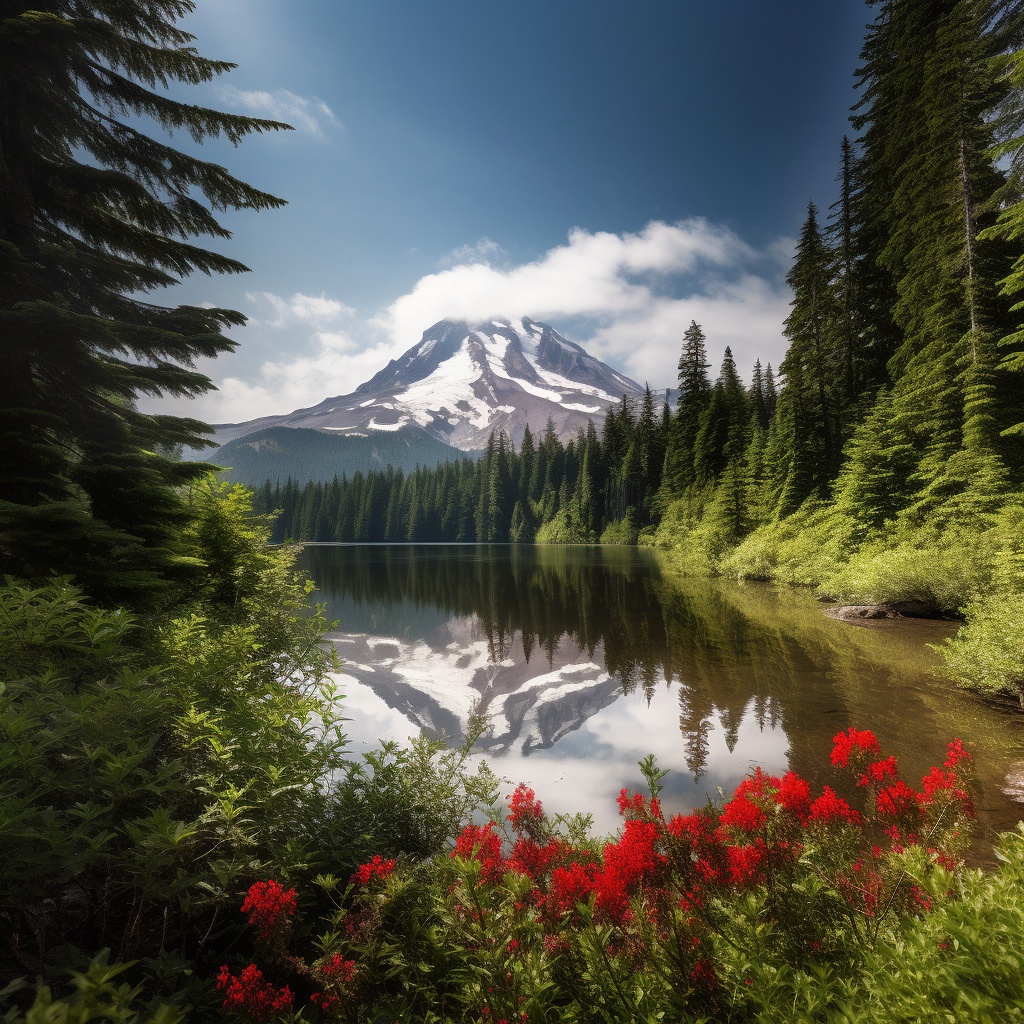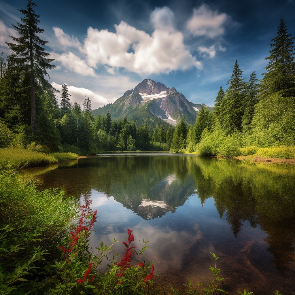 针叶林间河水流