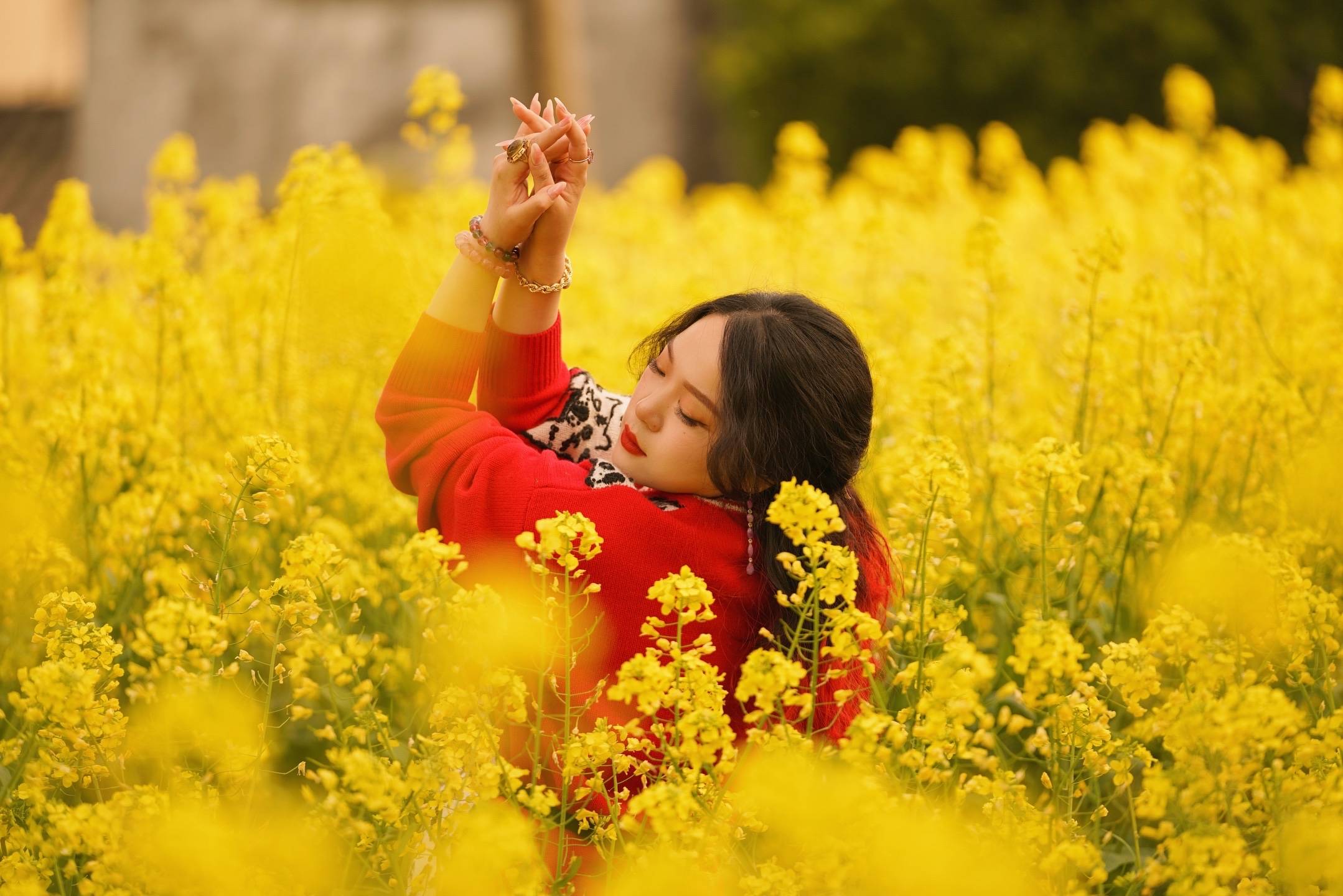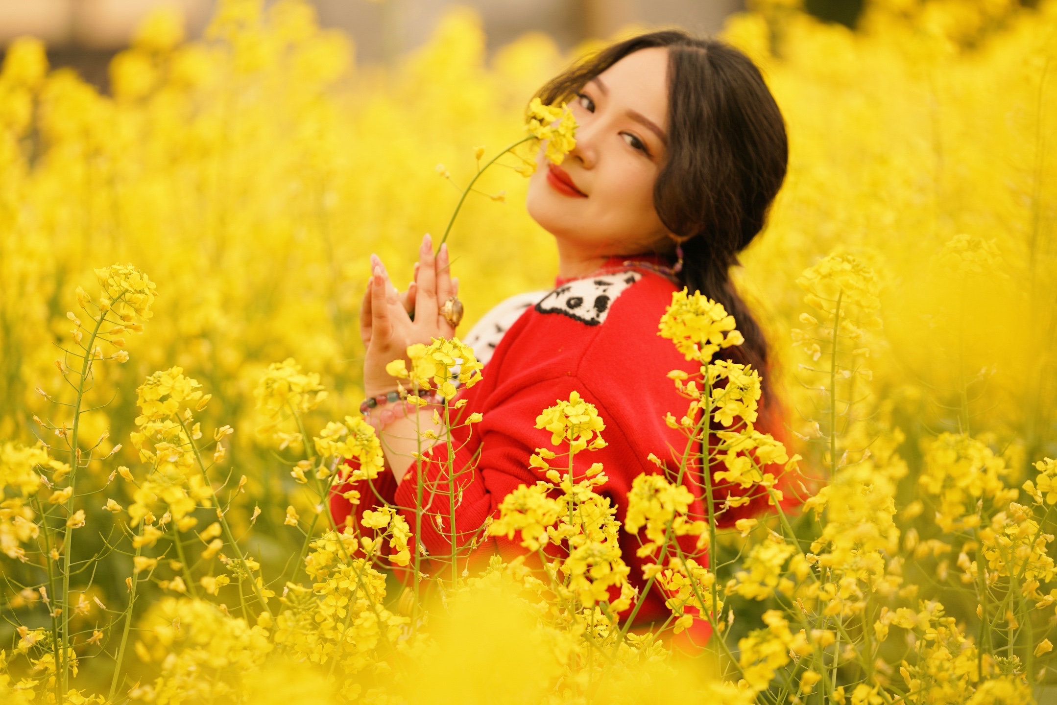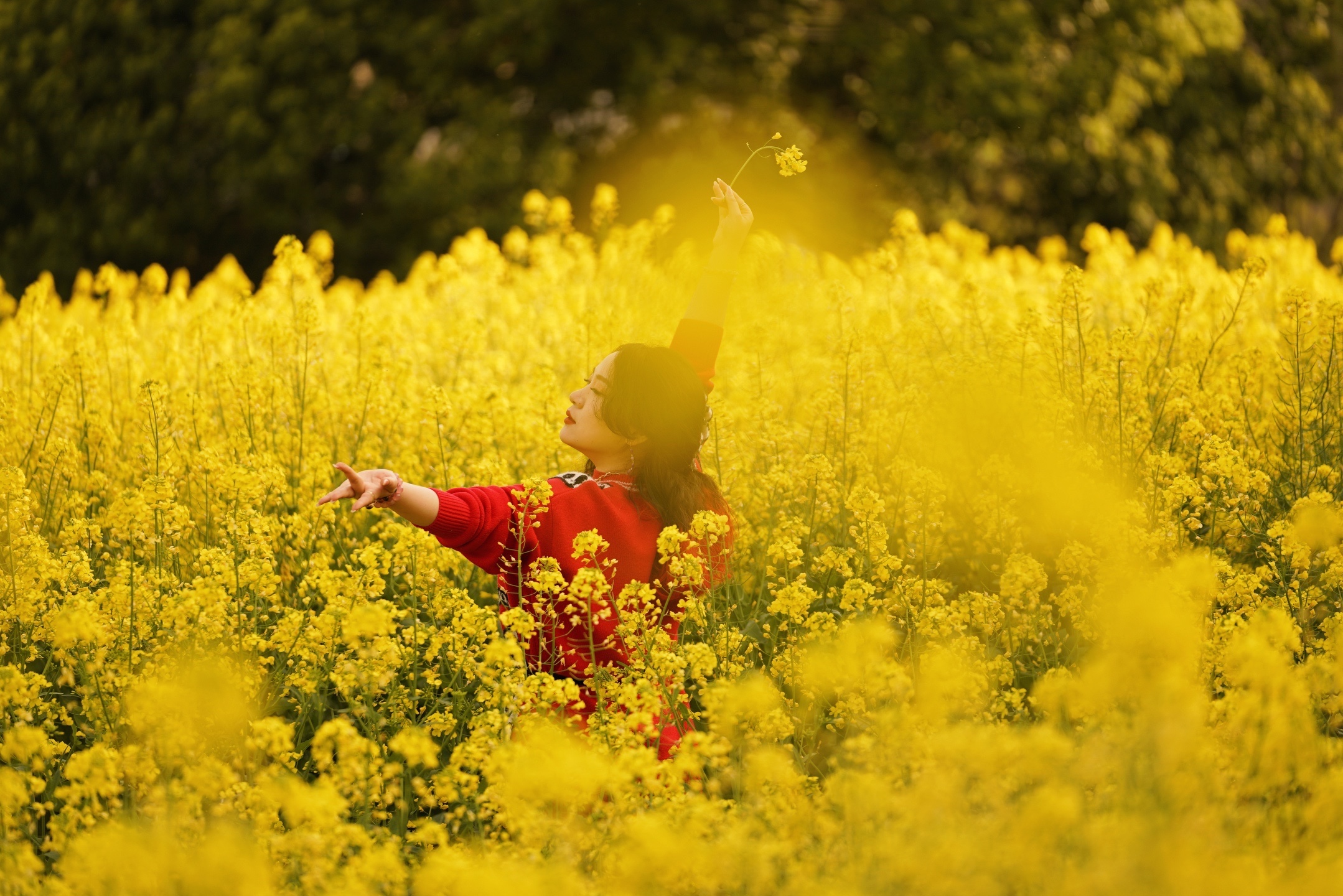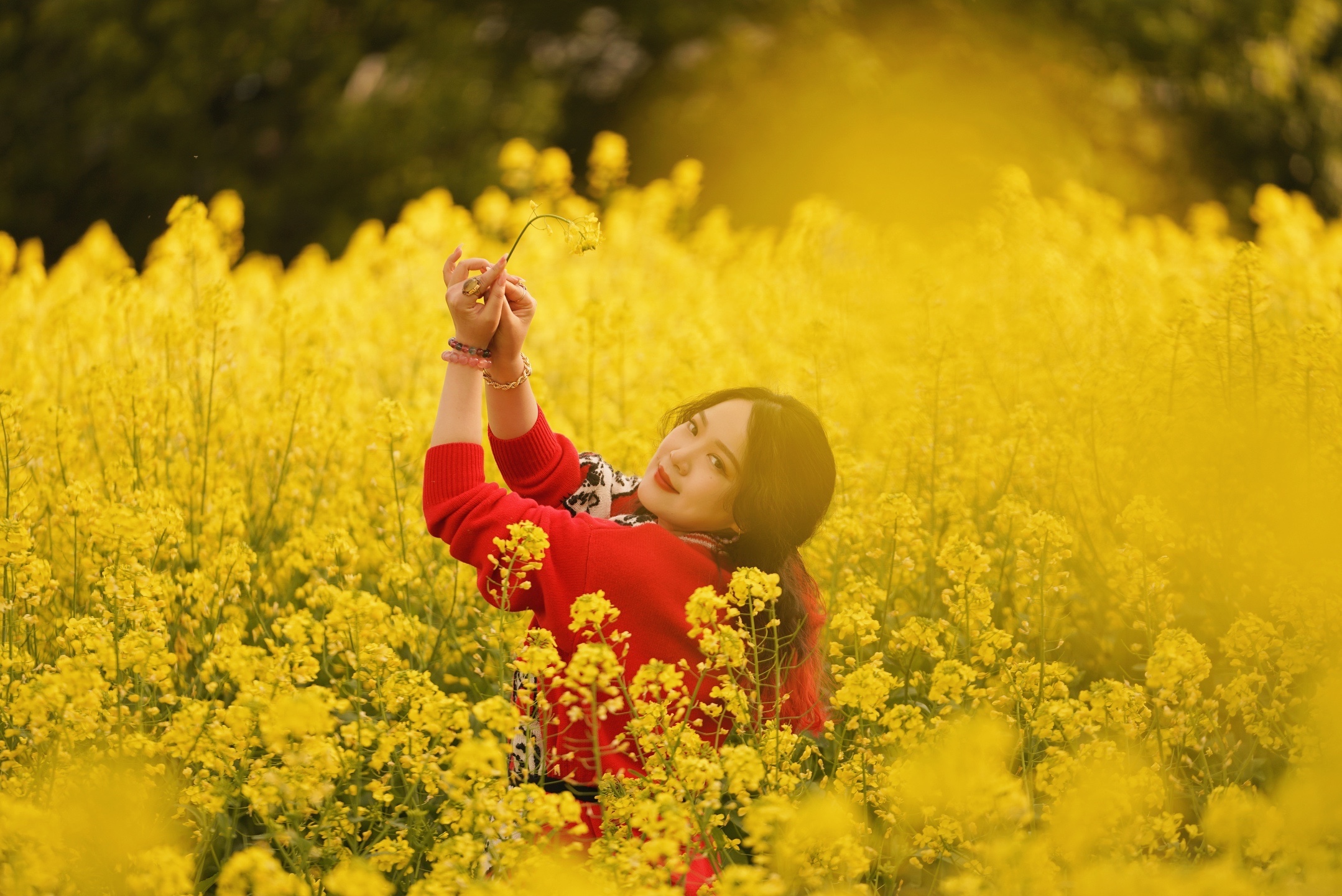 油菜花的花语:节节高升、未来希望、加油奋斗!油菜花的寓意为:才华横溢,努力奋斗,它开放时花穗是从下往上生长的,给人一种积极向上,发奋图强的感觉[呲牙]都挺好我喜欢,那种群开奔放的美。