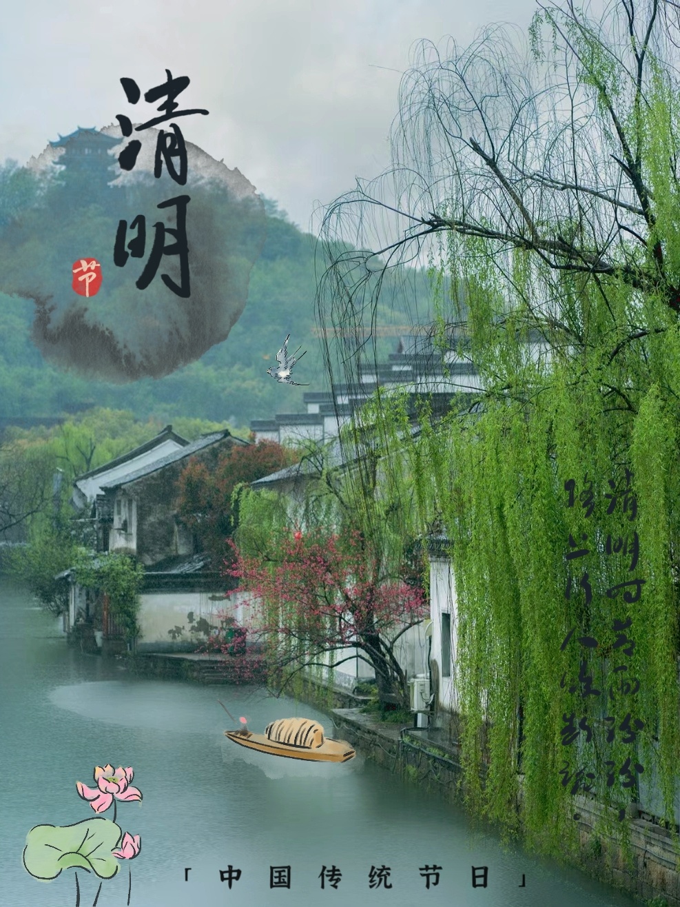 清明节|古风文字风景照海报✨点击【使用配方】添加1张照片即可-美图社区-美图秀秀
