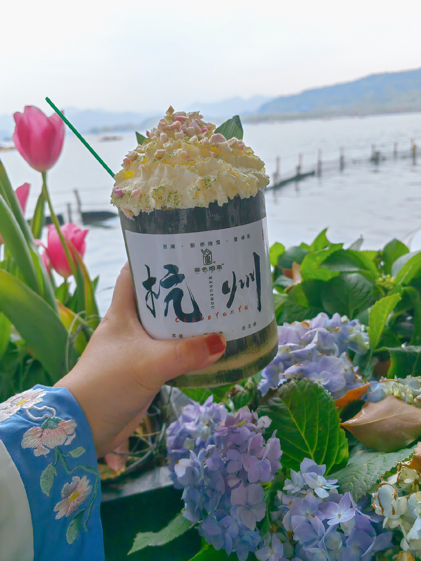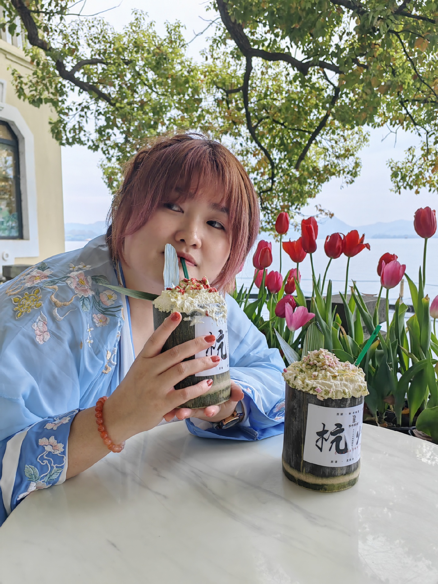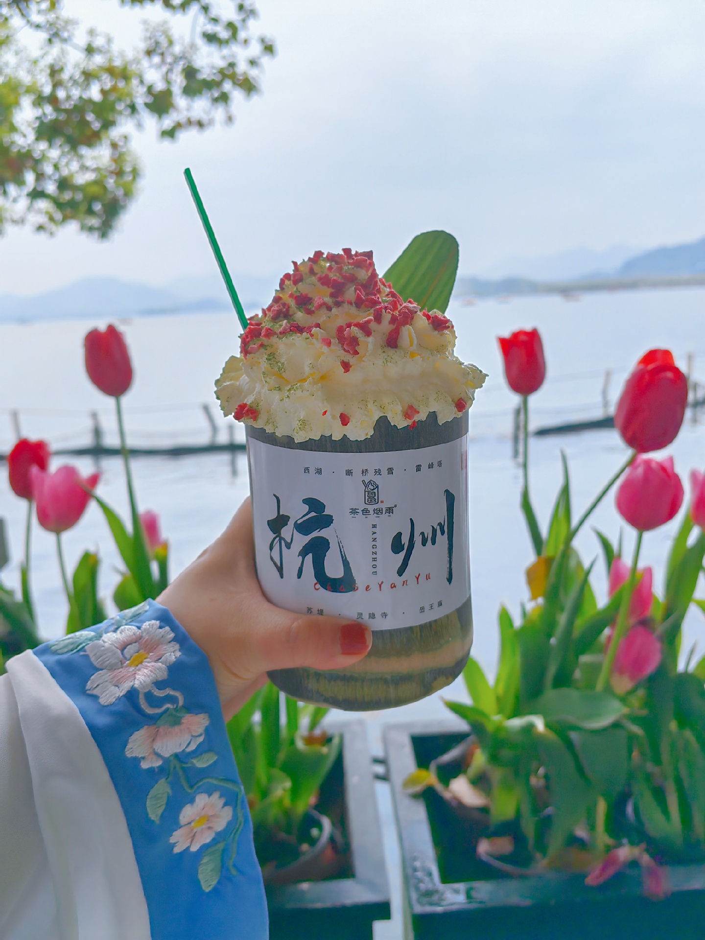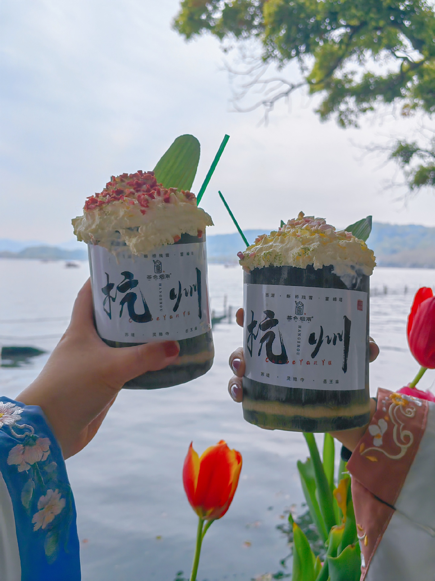 刚好穿着汉服去西湖边拍照,就顺便买了茶色烟雨的竹筒奶茶当拍摄道具了 ,,只能说来杭州打卡这个竹筒奶茶绝对算是收“智商税”,只能拿来拍个照,口味性价比真的不高,别抱太高期待😂😅