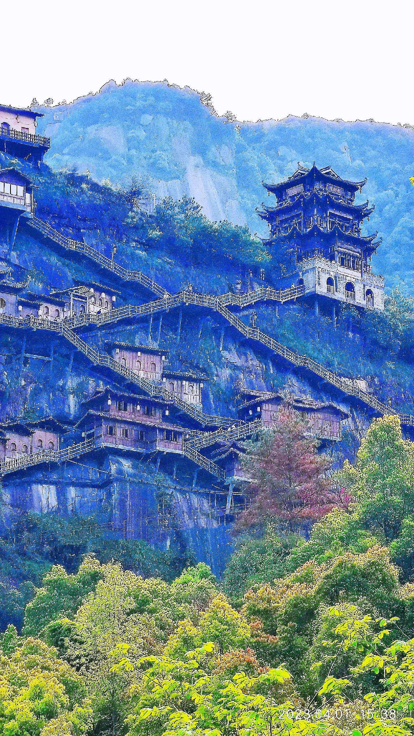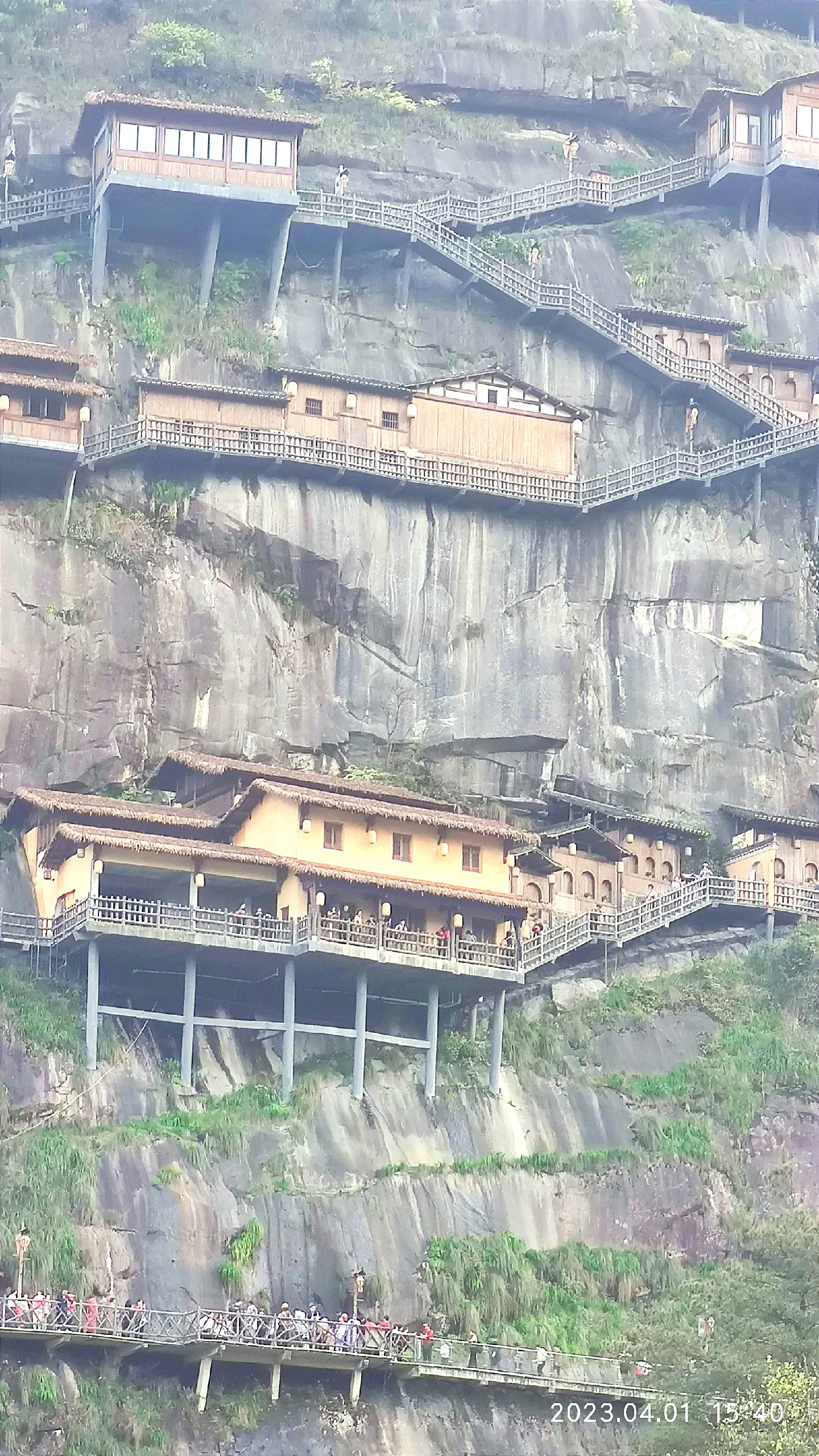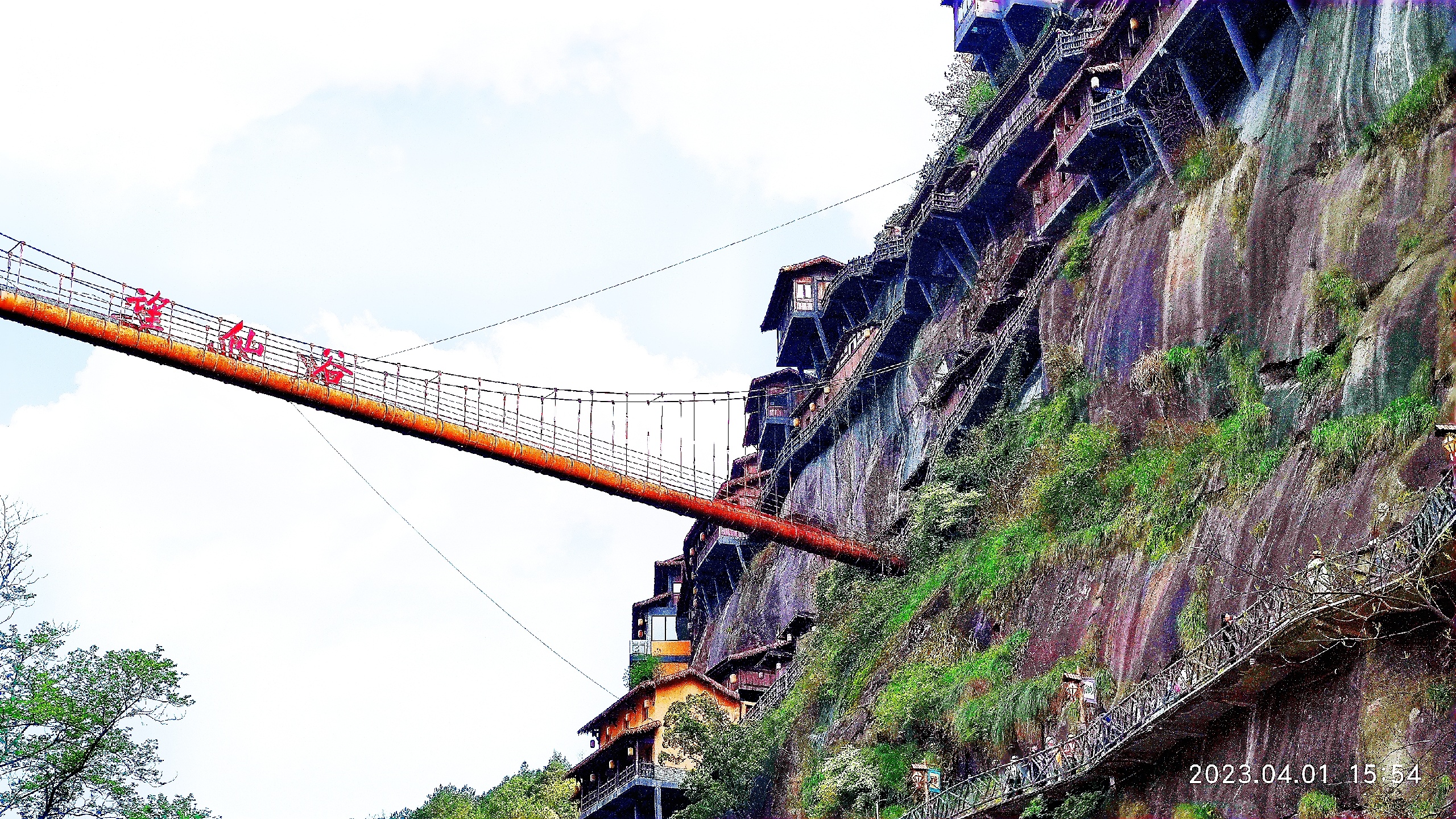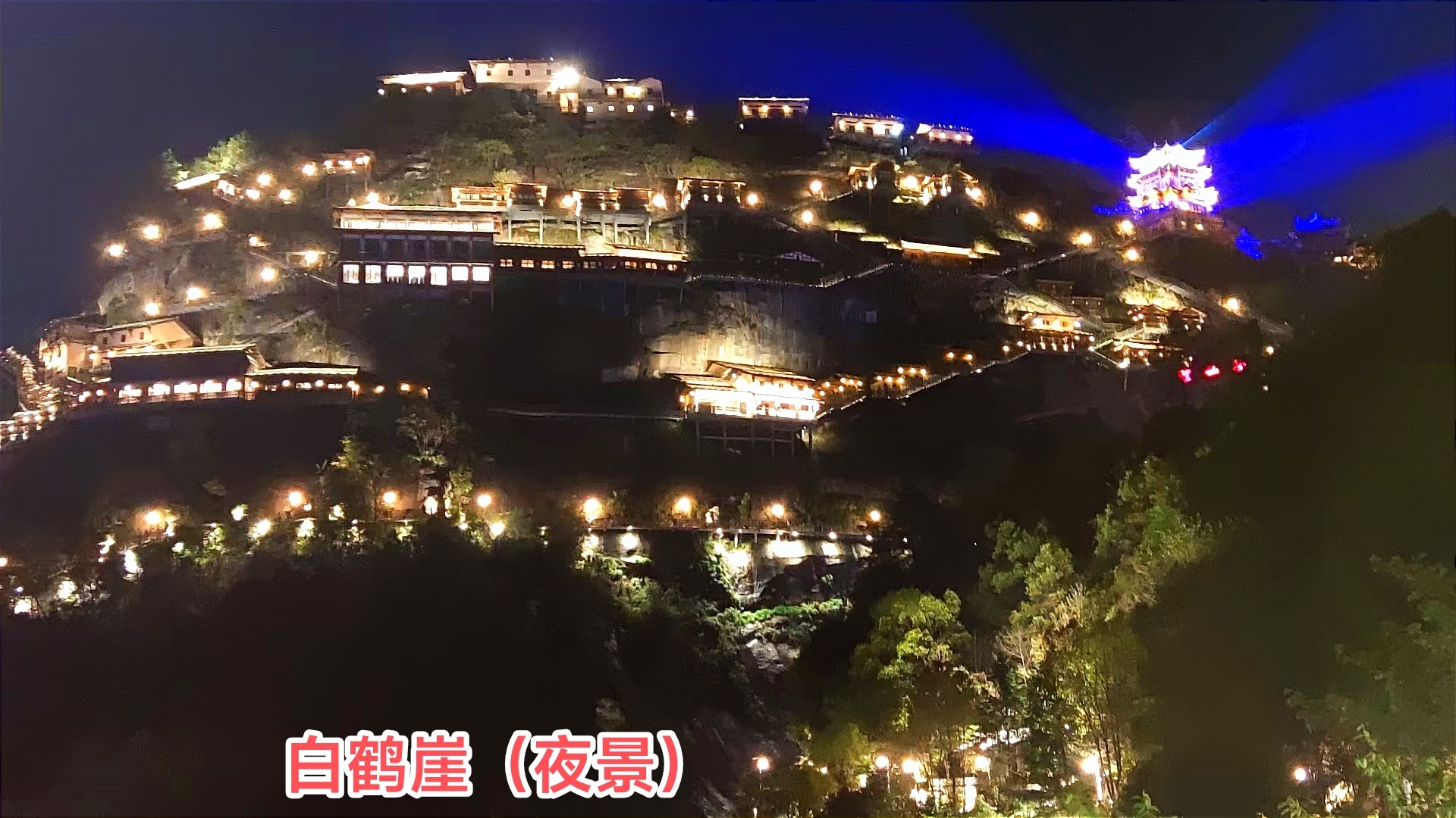 1.悬空民宿 挂在望仙谷景区白鹤崖壁。白鹤崖,峭壁悬崖,垂直高度110多米。昔日,众多道家方士在此结庐修行,今日崖上建有悬空玻璃客房,悬崖图书馆、餐厅、高空观景台,玻璃栈道……