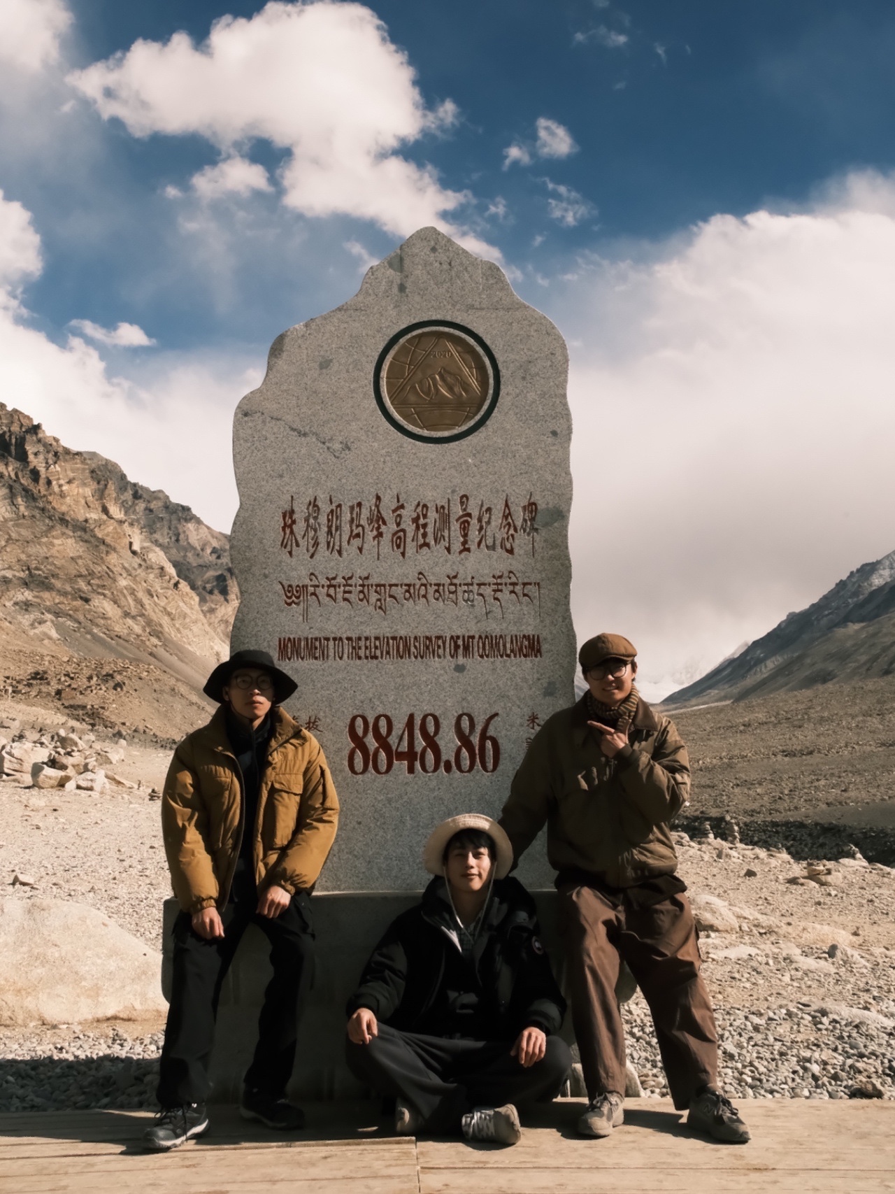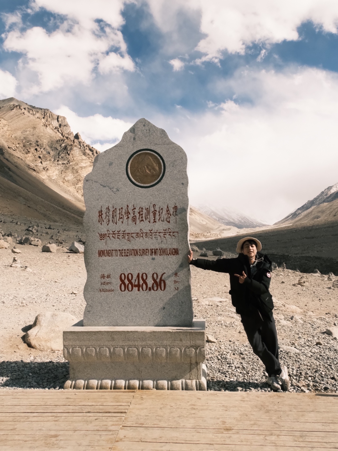 大本营除了帐篷外,真就三块石碑(其实还有另外两块,拍都没想拍)珠峰的尖尖还有好远,而且是在两座山峰中间,其实观景位置并不佳。我们当天下午到还遇到多云天气,完全都看不到任何珠峰的影子。