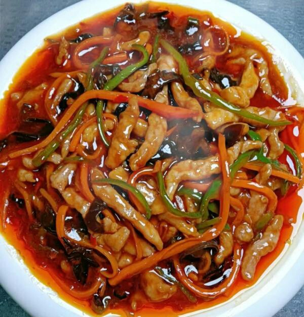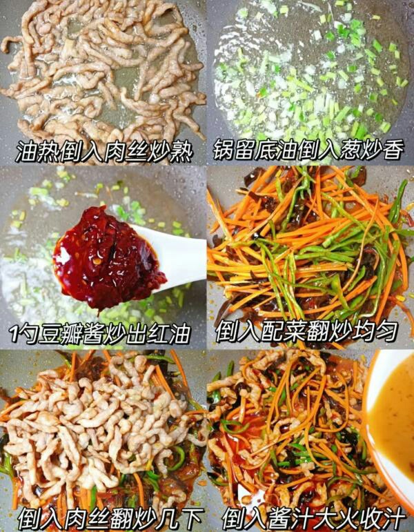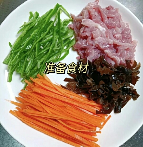 鱼香肉丝材料:肉丝150g、木耳适量、香菇适量、胡萝卜半根、-美图社区-美图秀秀