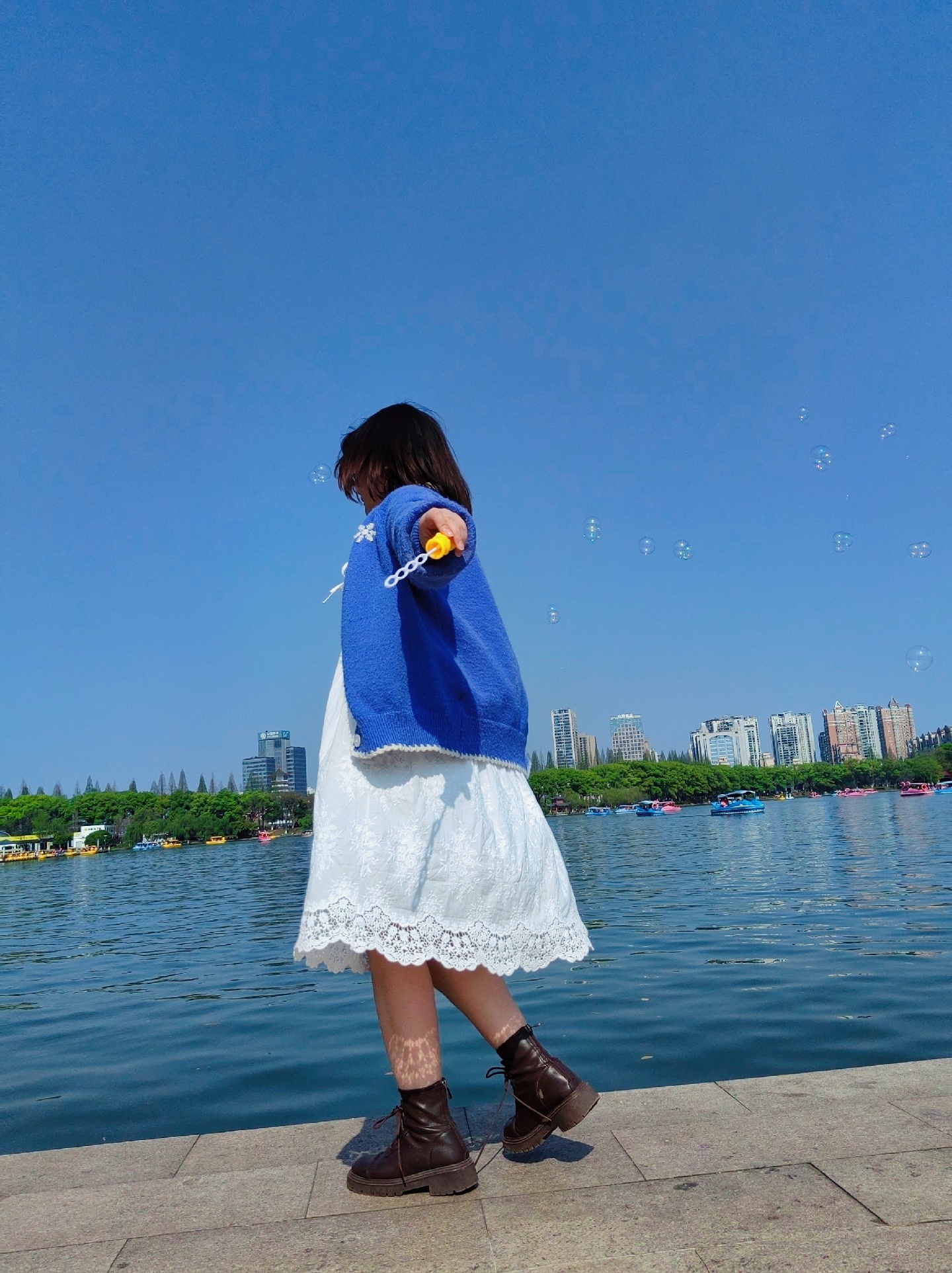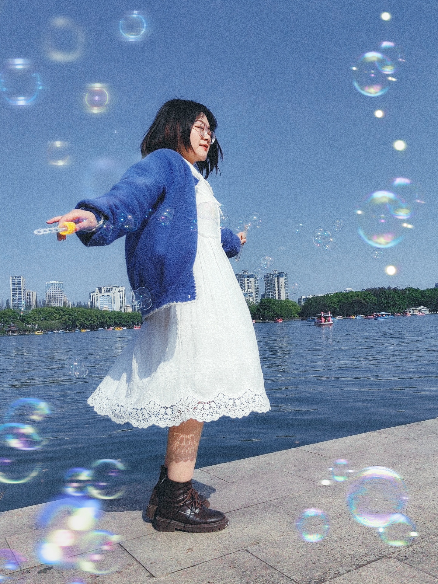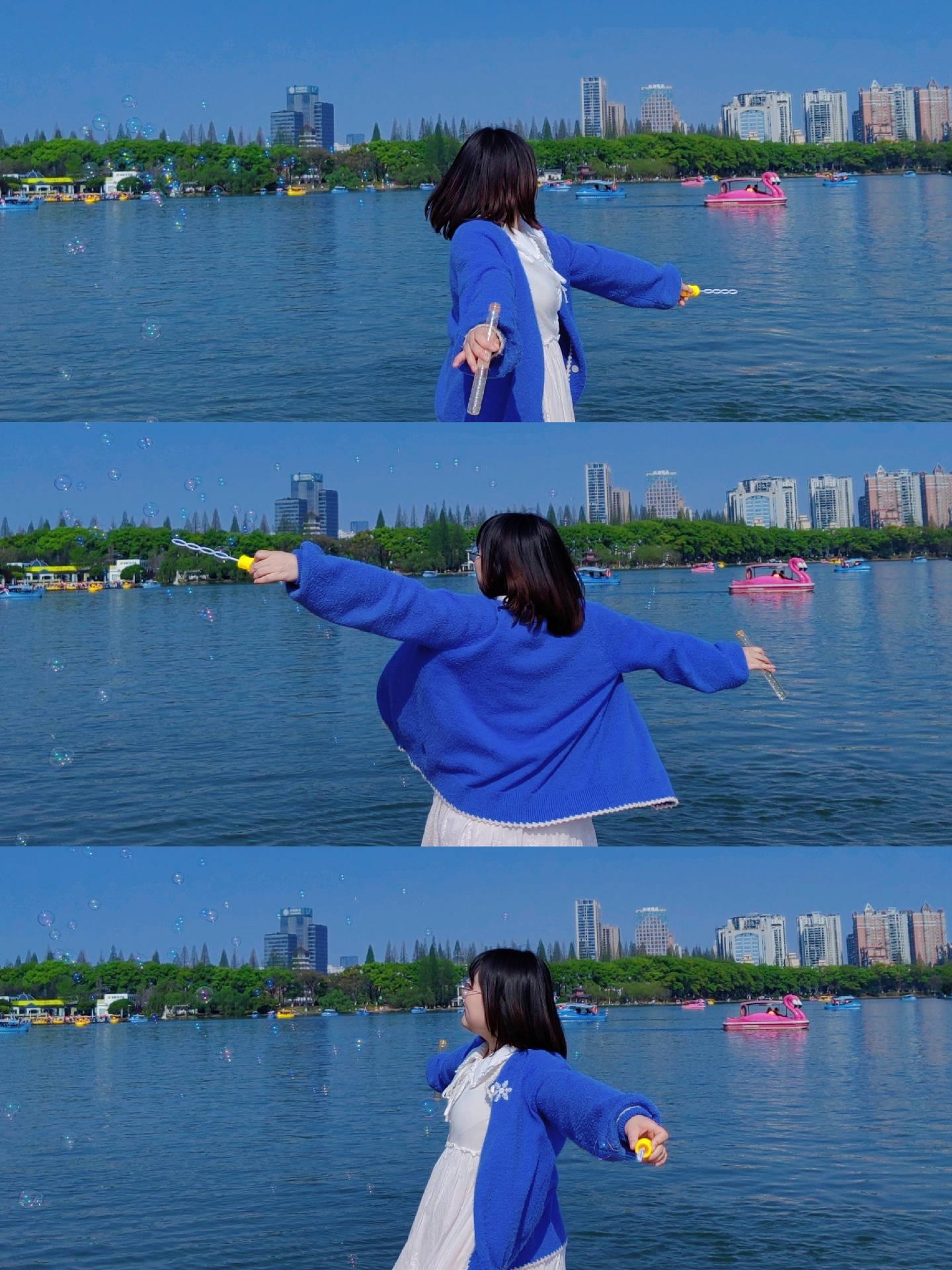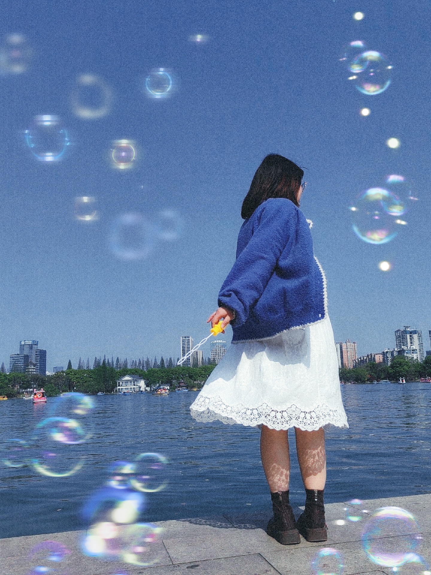 第一,拿到泡泡慢慢转圈圈,让朋友蹲下来连拍。