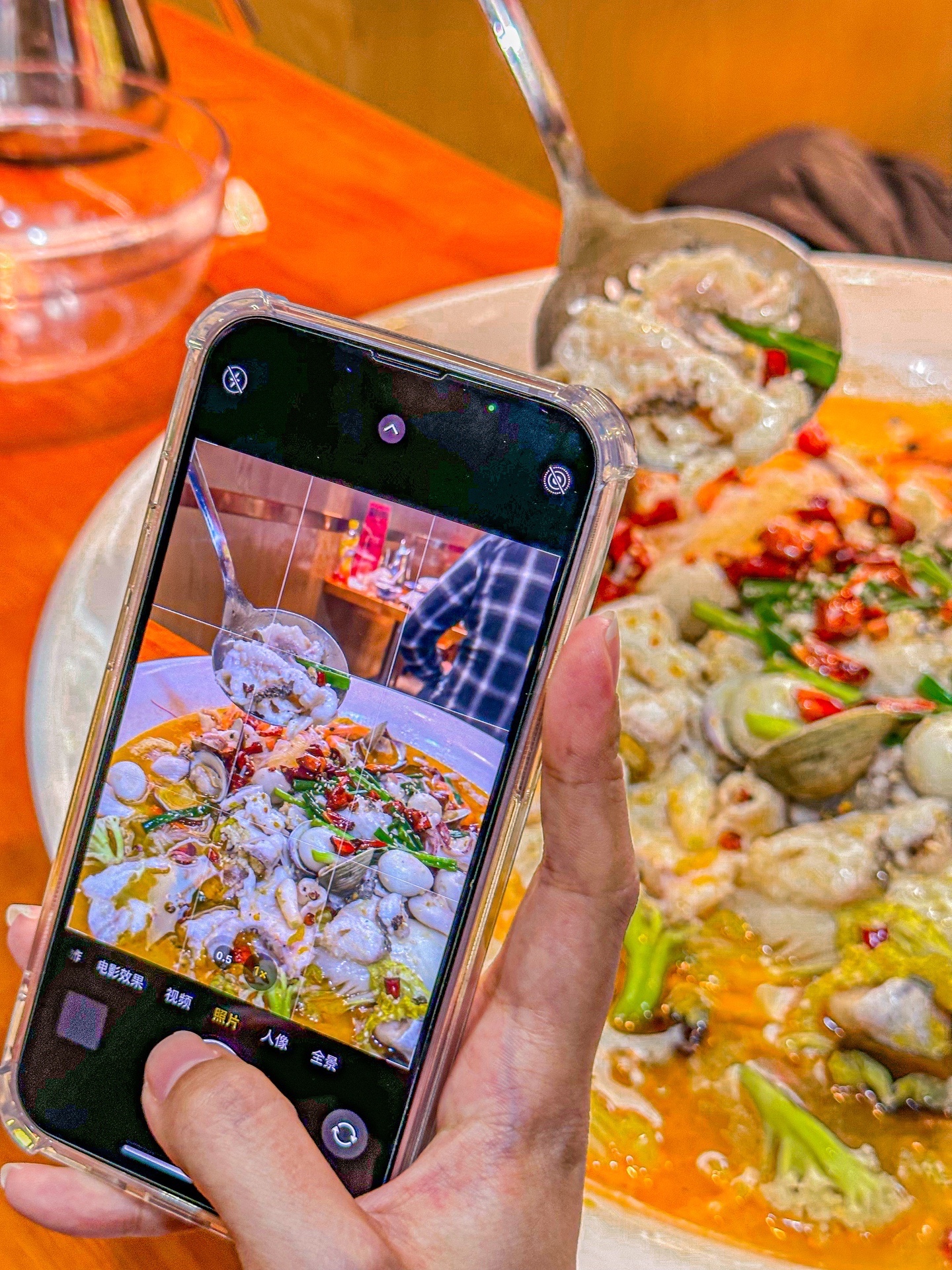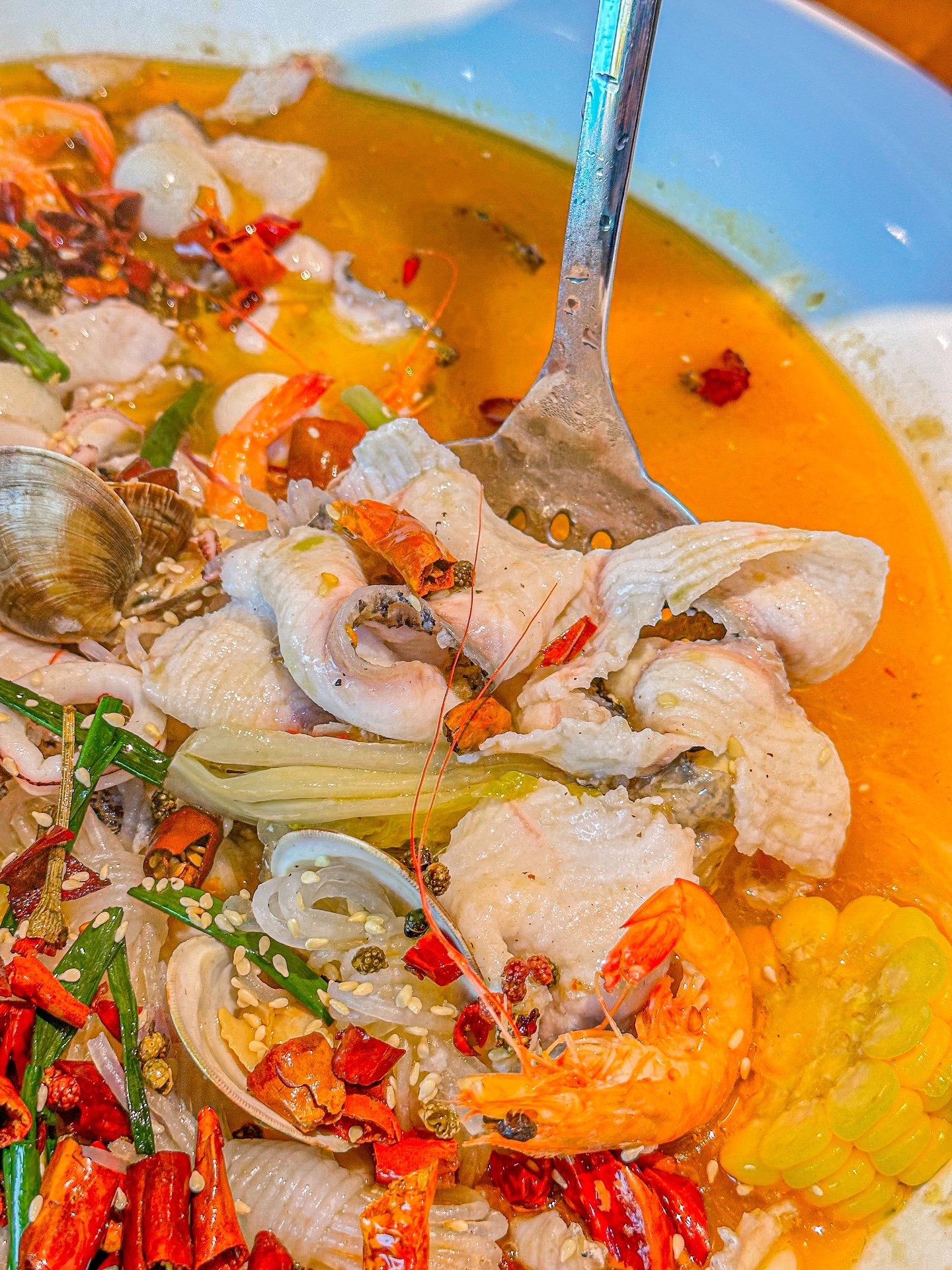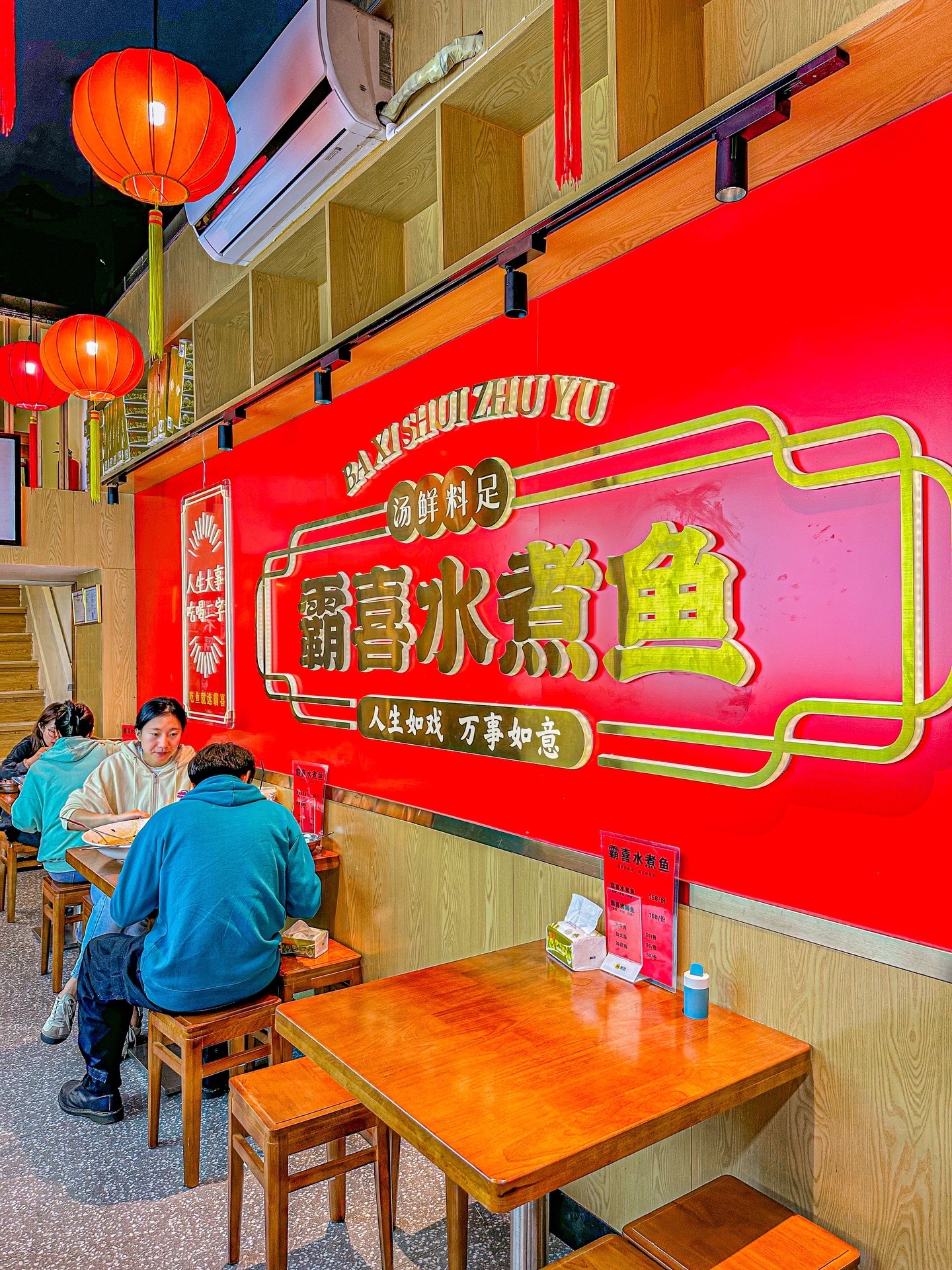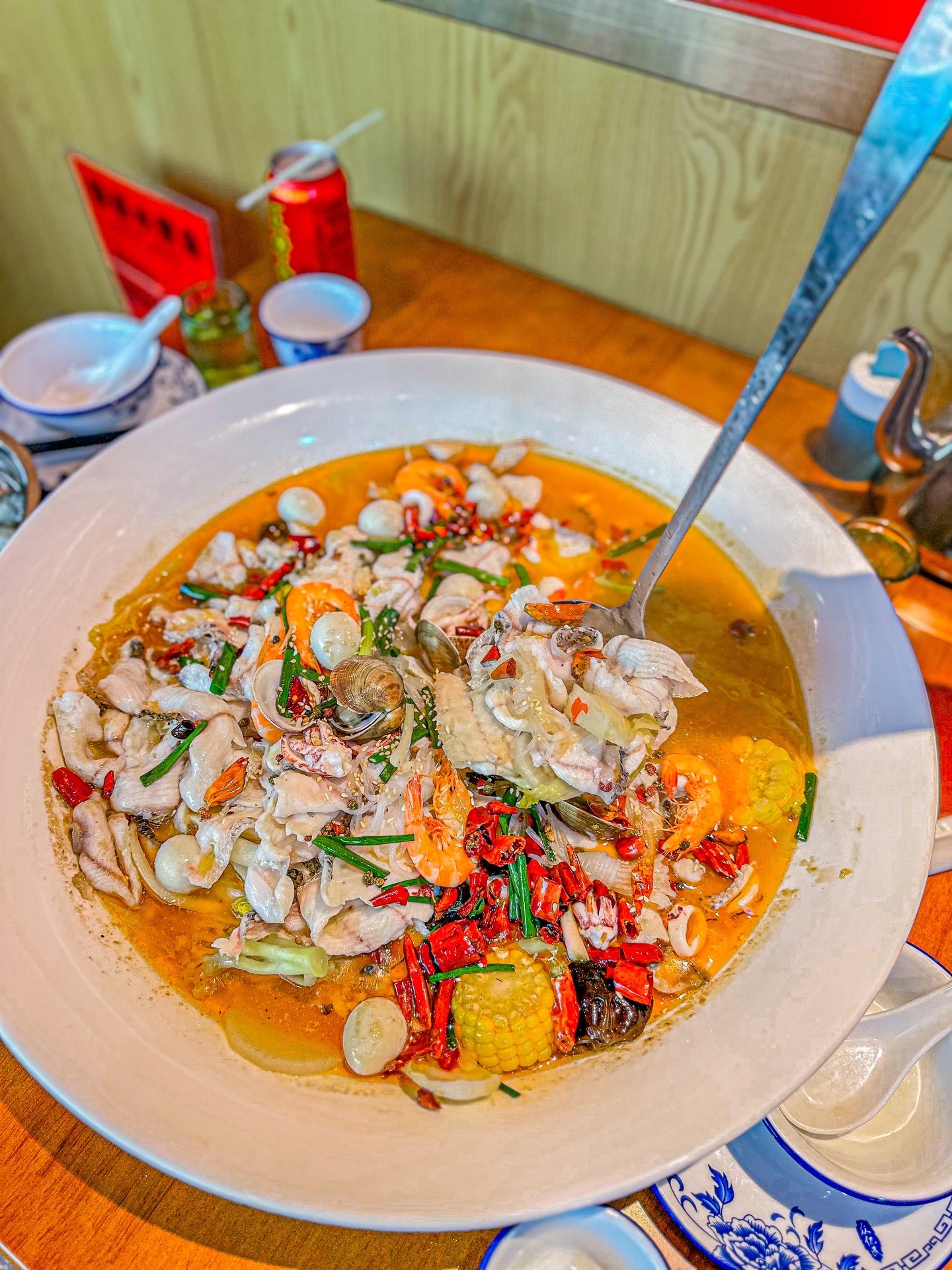 看到老板从店里端出这么一大盘水煮鱼,我瞬间就走不动了,份量那么大才158,也太划算了吧