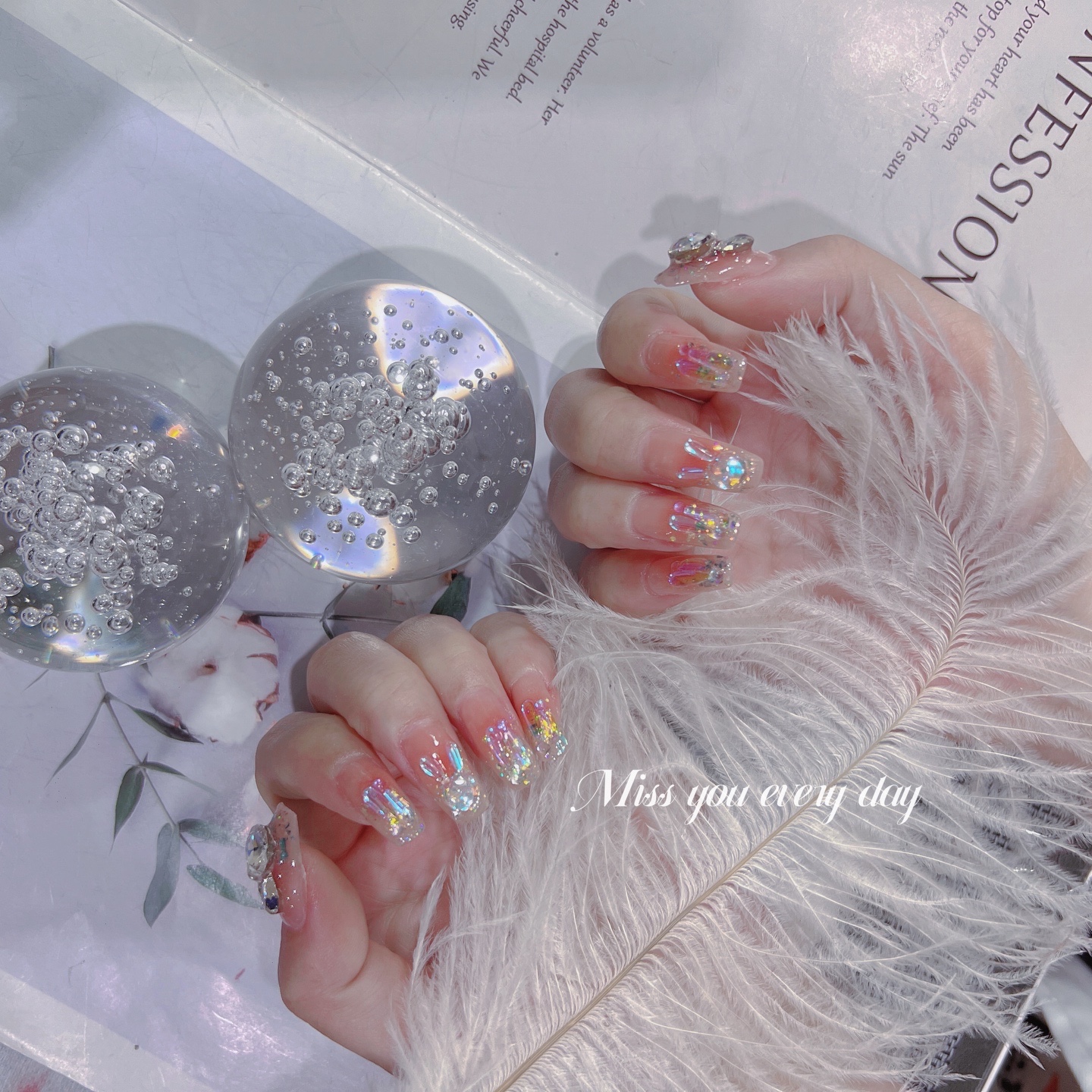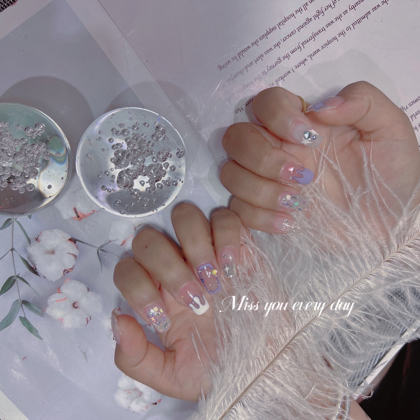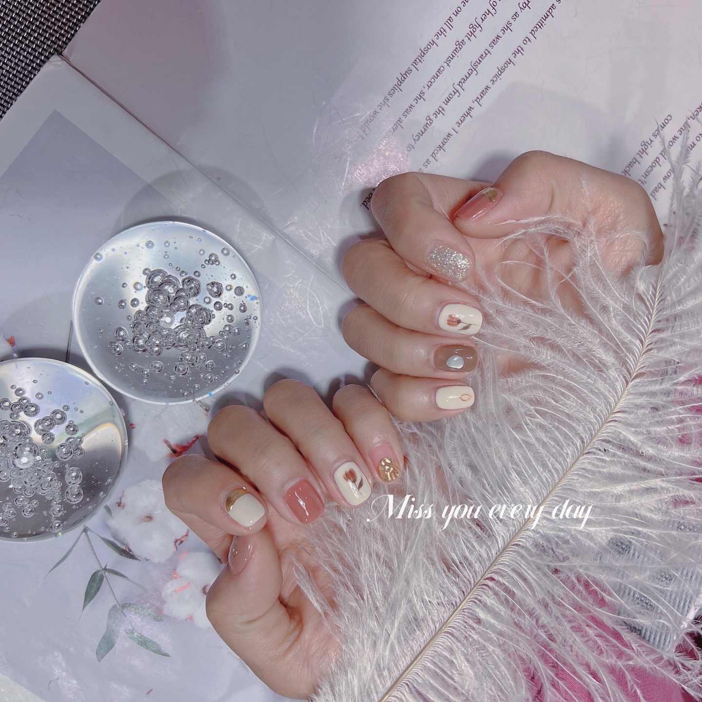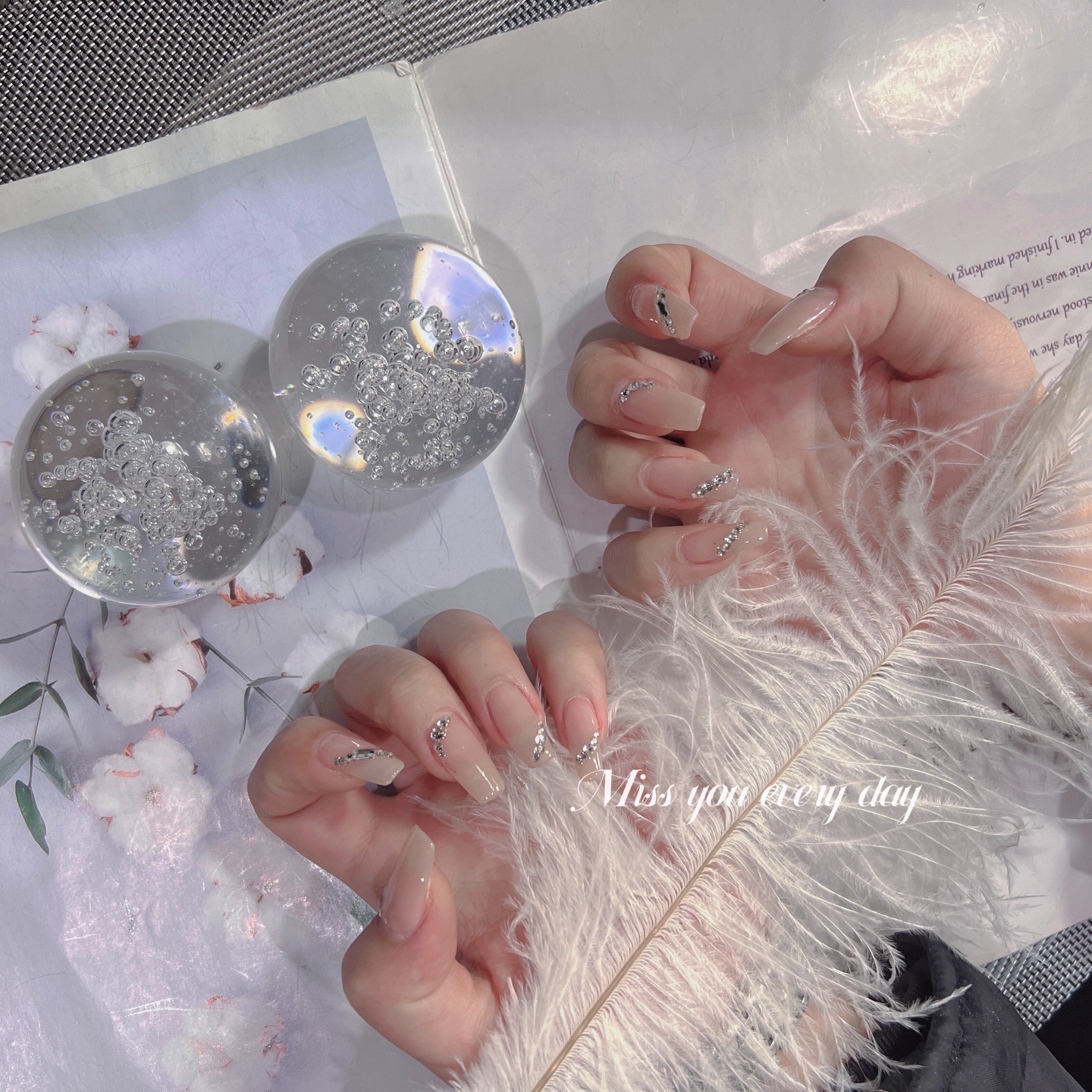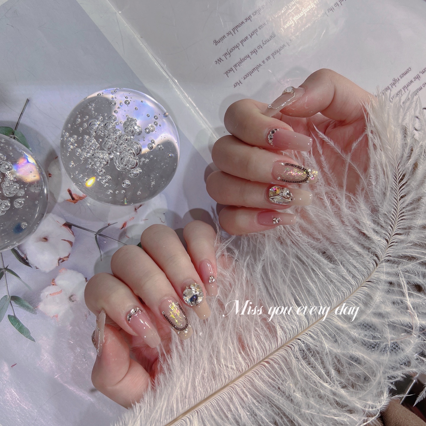 2023年春夏新款流行显白美甲款 裸色系链条美甲