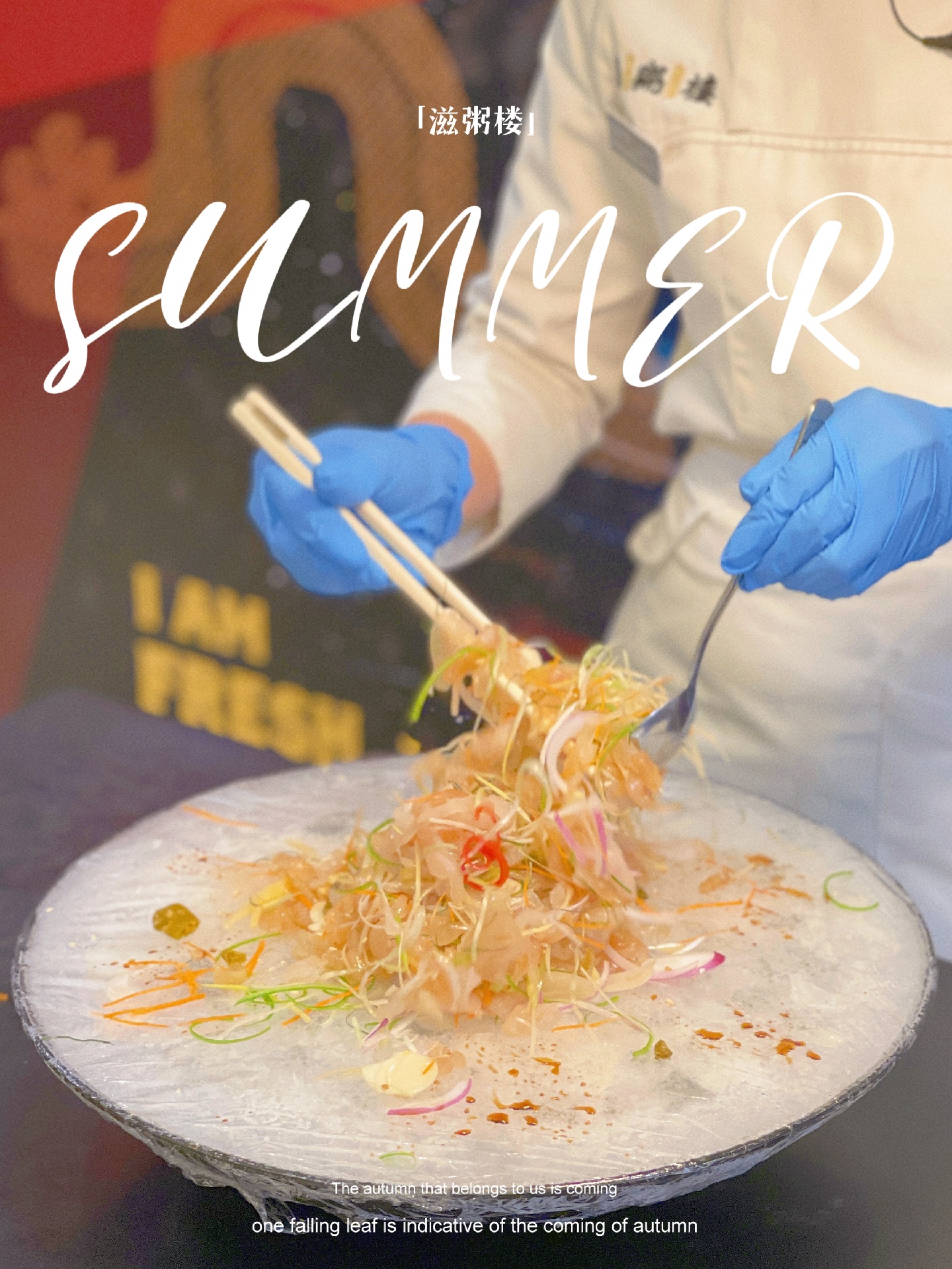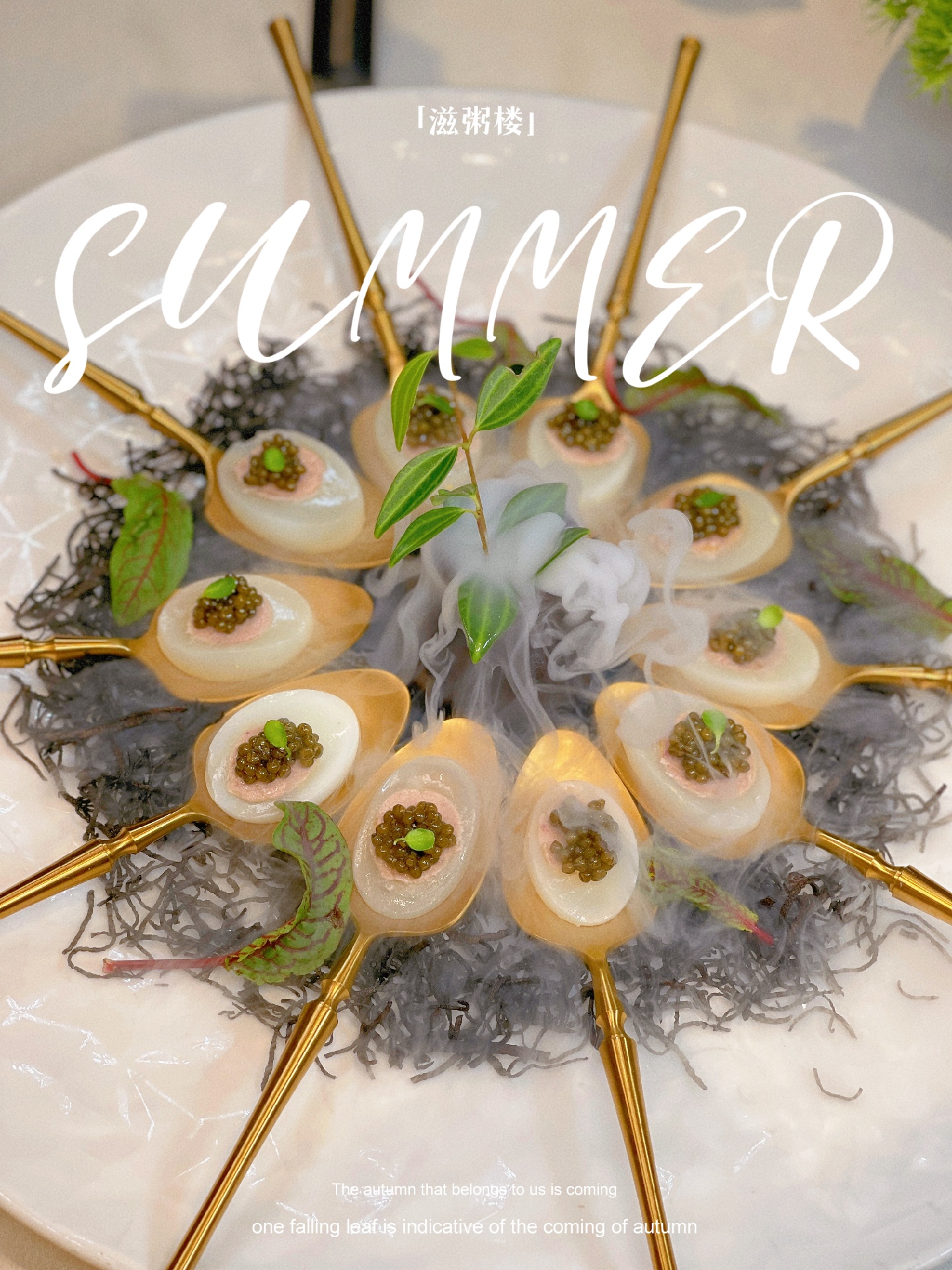 顺德凉拌鱼皮 鱼籽酱鹅肝温泉蛋 冰镇爽甜水果百合