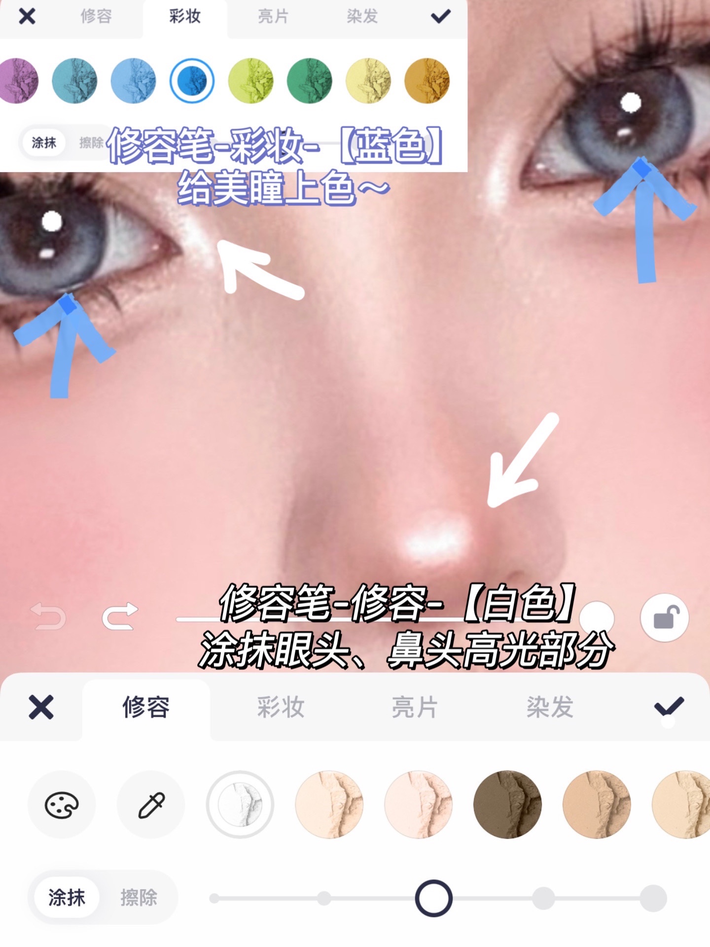 修容笔-白色-涂抹眼头、鼻头高光部分