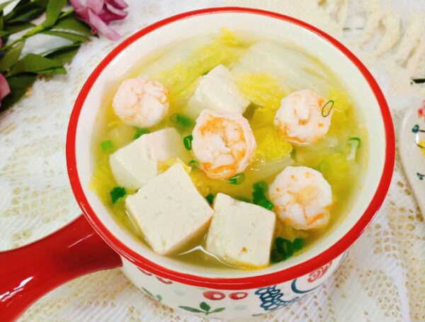 娃娃菜虾仁豆腐汤