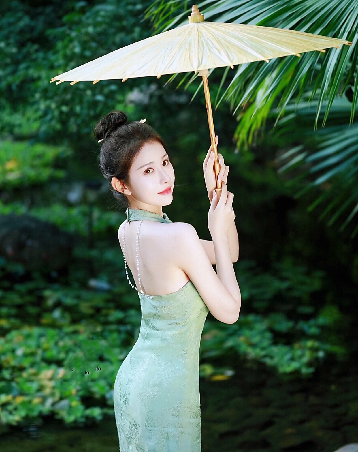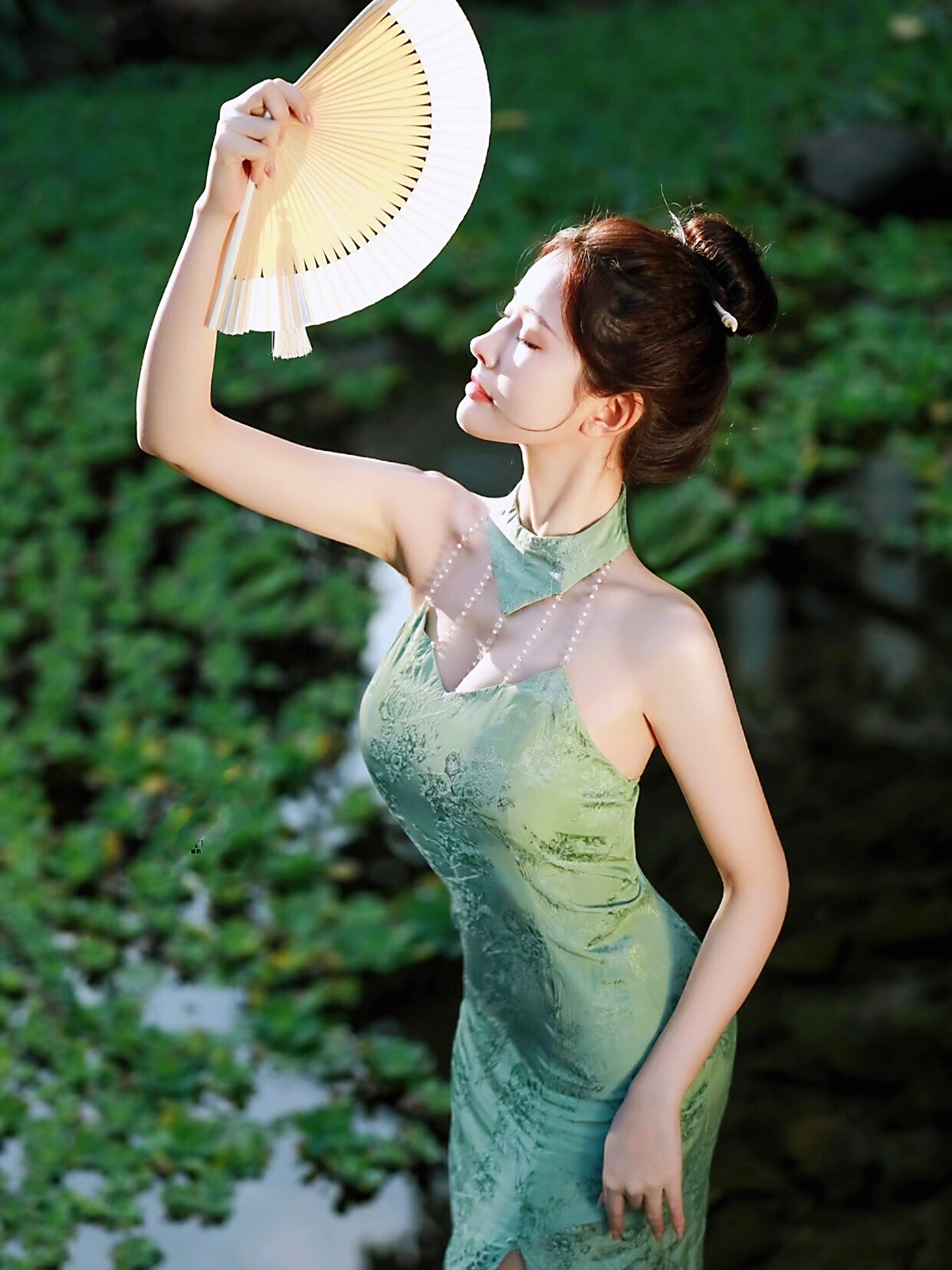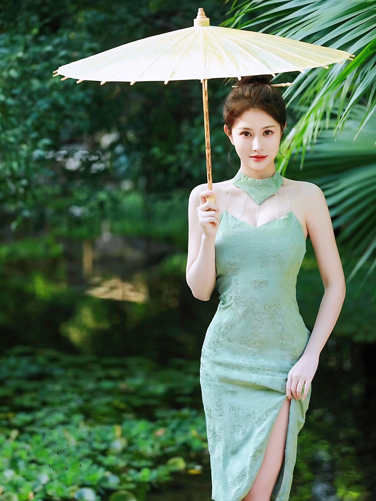浅绿色旗袍小姐姐写真,太美了吧!🍀👏