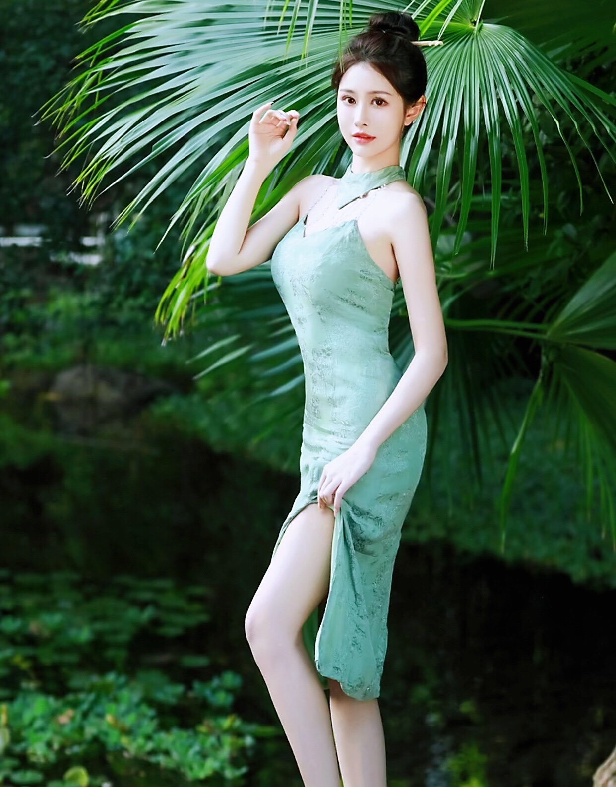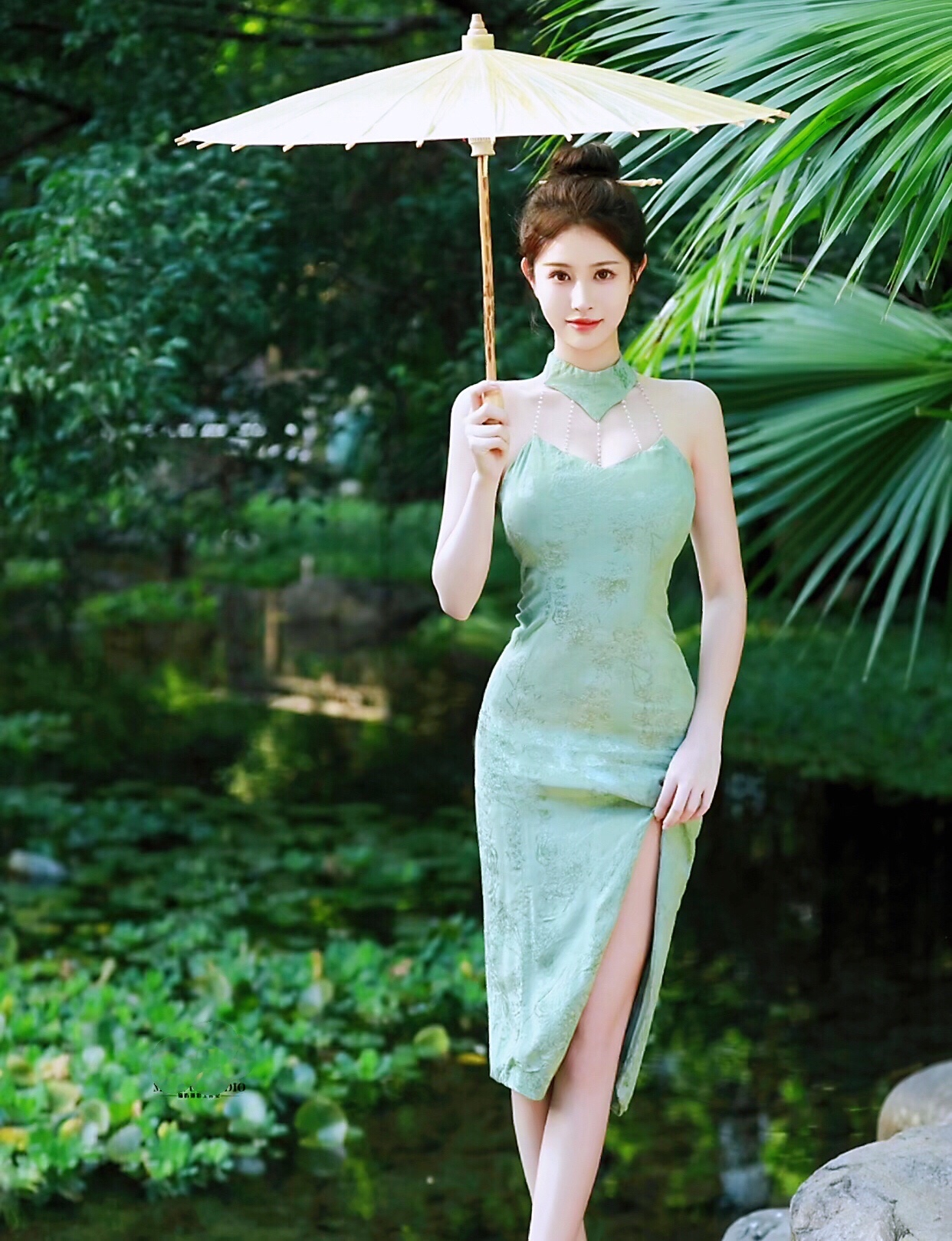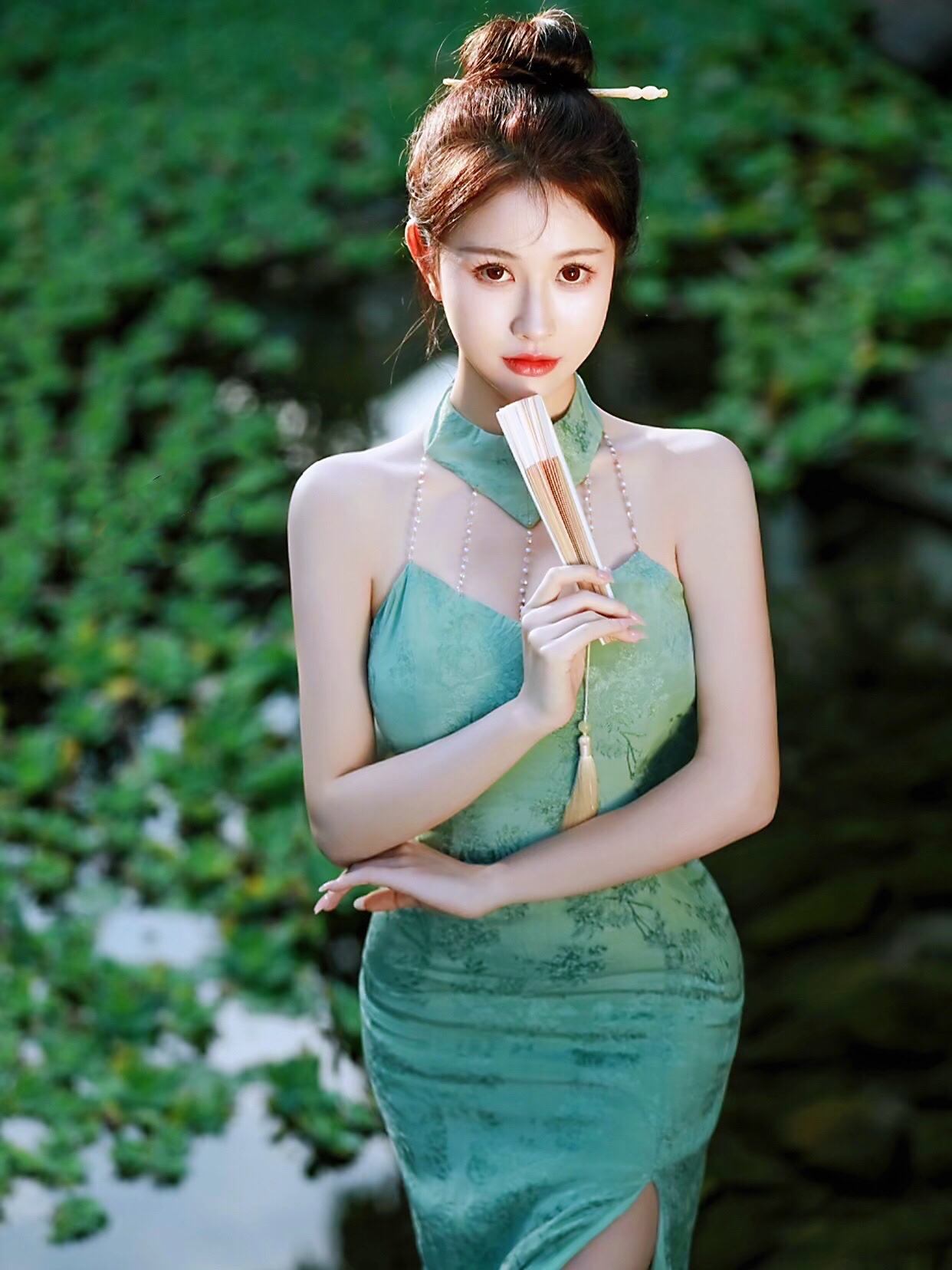 浅绿色旗袍小姐姐写真,太美了吧!🍀👏