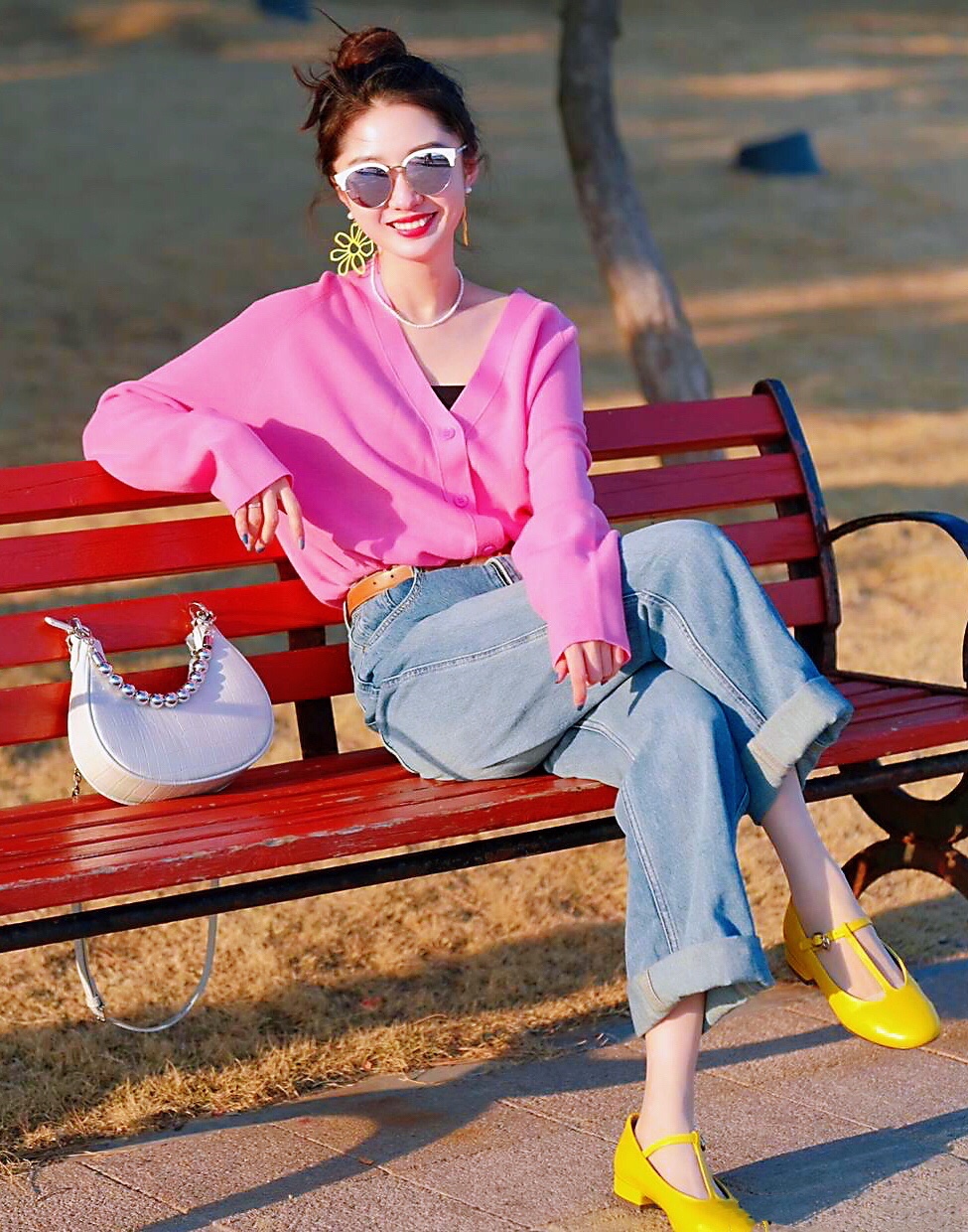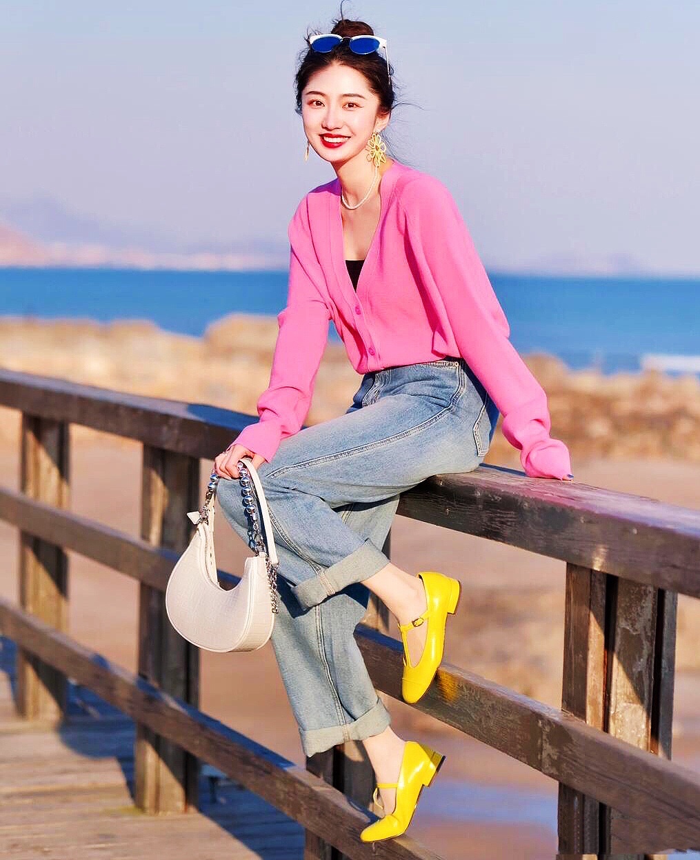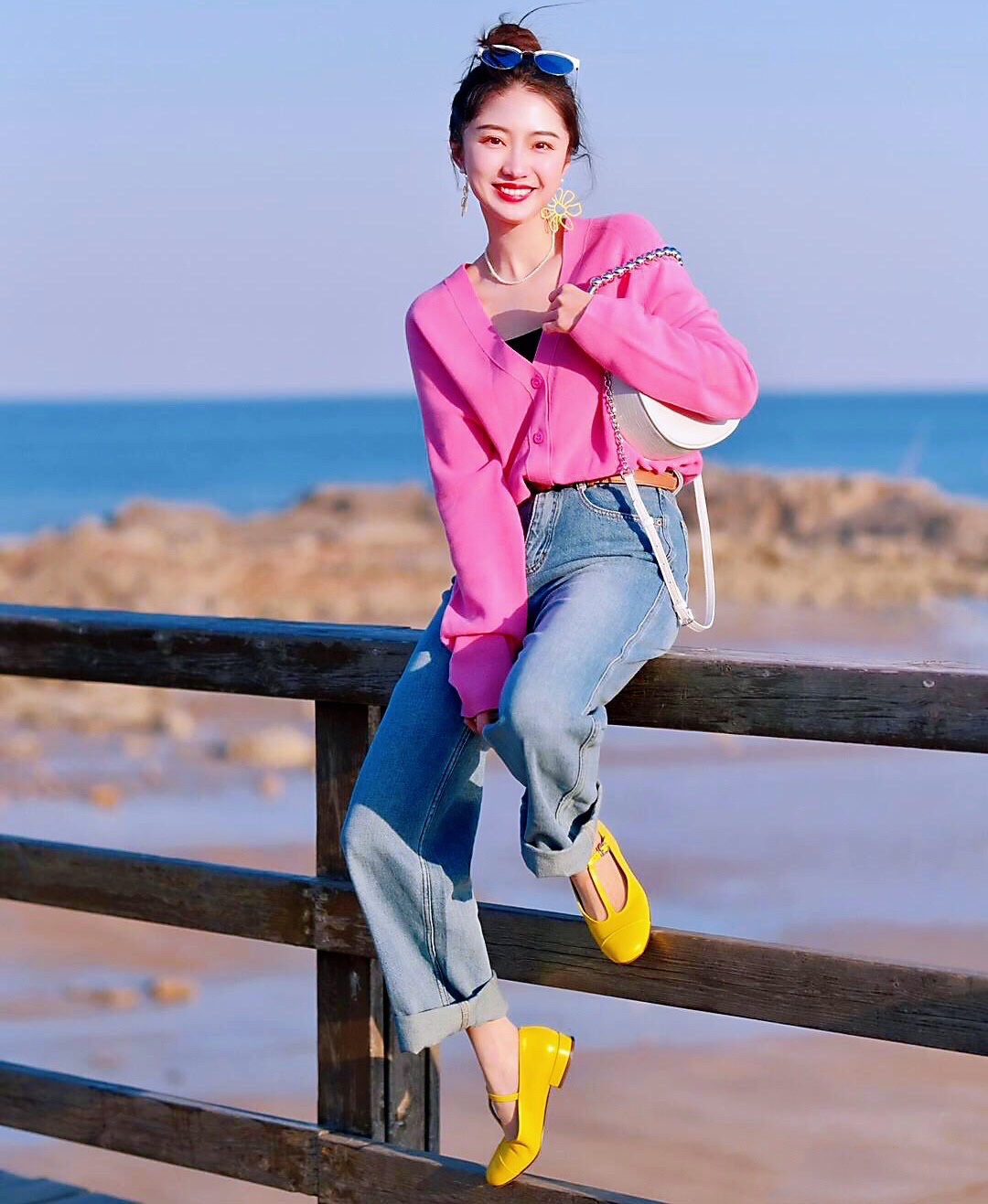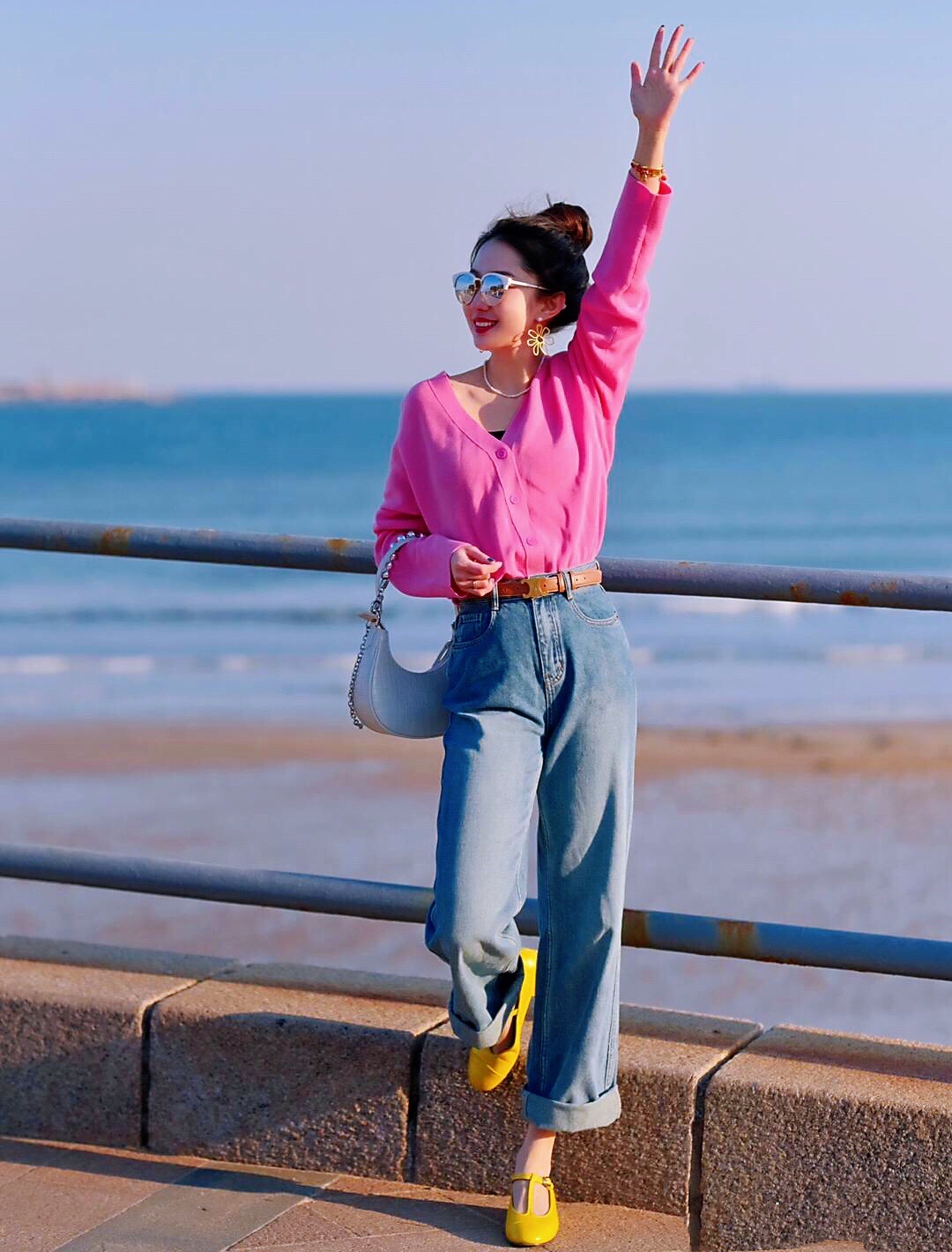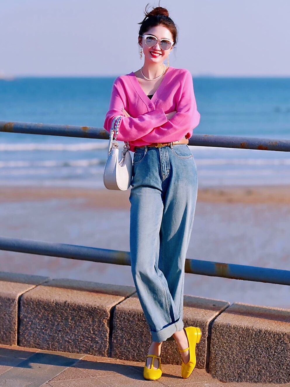 玫瑰红衬衫上衣搭配牛仔裤👖