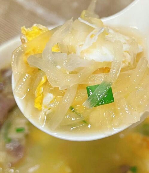 萝卜丝牛肉鸡蛋汤是春季最适合的汤品之一,春季天气非常容易上火,身体的能量被消耗光,全身都有气无力,完全没有精神,一定记得多喝这汤,提供丰富的营养,调理肝脏和脾胃,对健康有利。