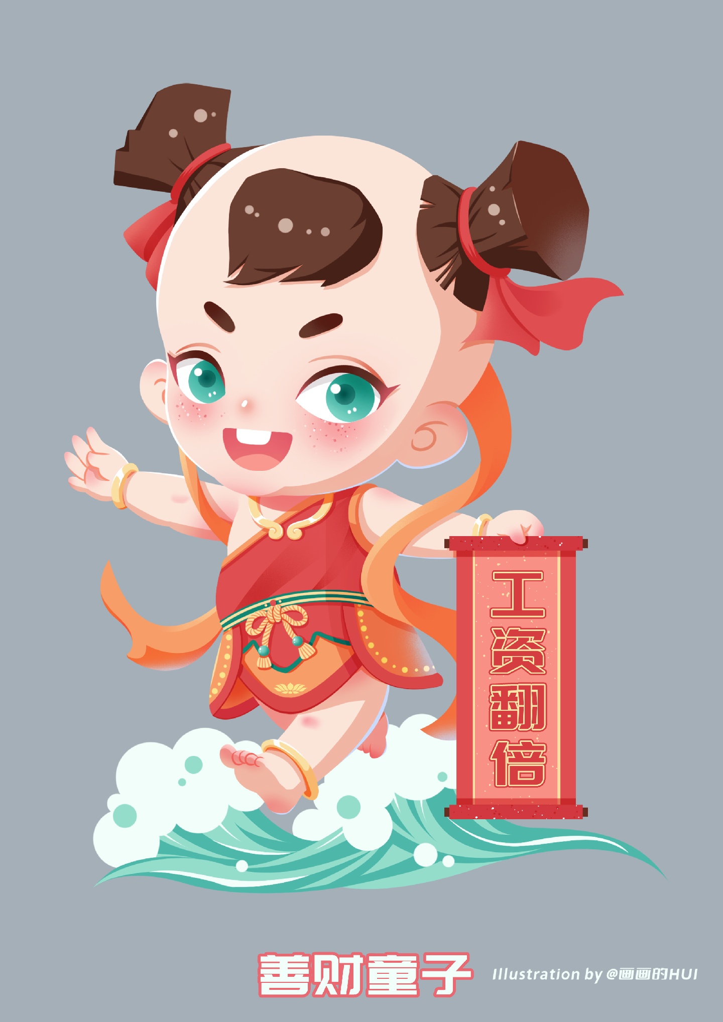 想画一个和财富有关的Q版,感觉大多数都是画财神爷的,就决定画一个偏门的善财童子,画完了感觉还行😁