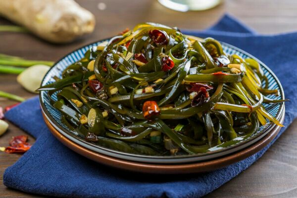 食材:海带、小米椒、葱花、辣椒油、生抽、醋、盐、鸡精、白糖