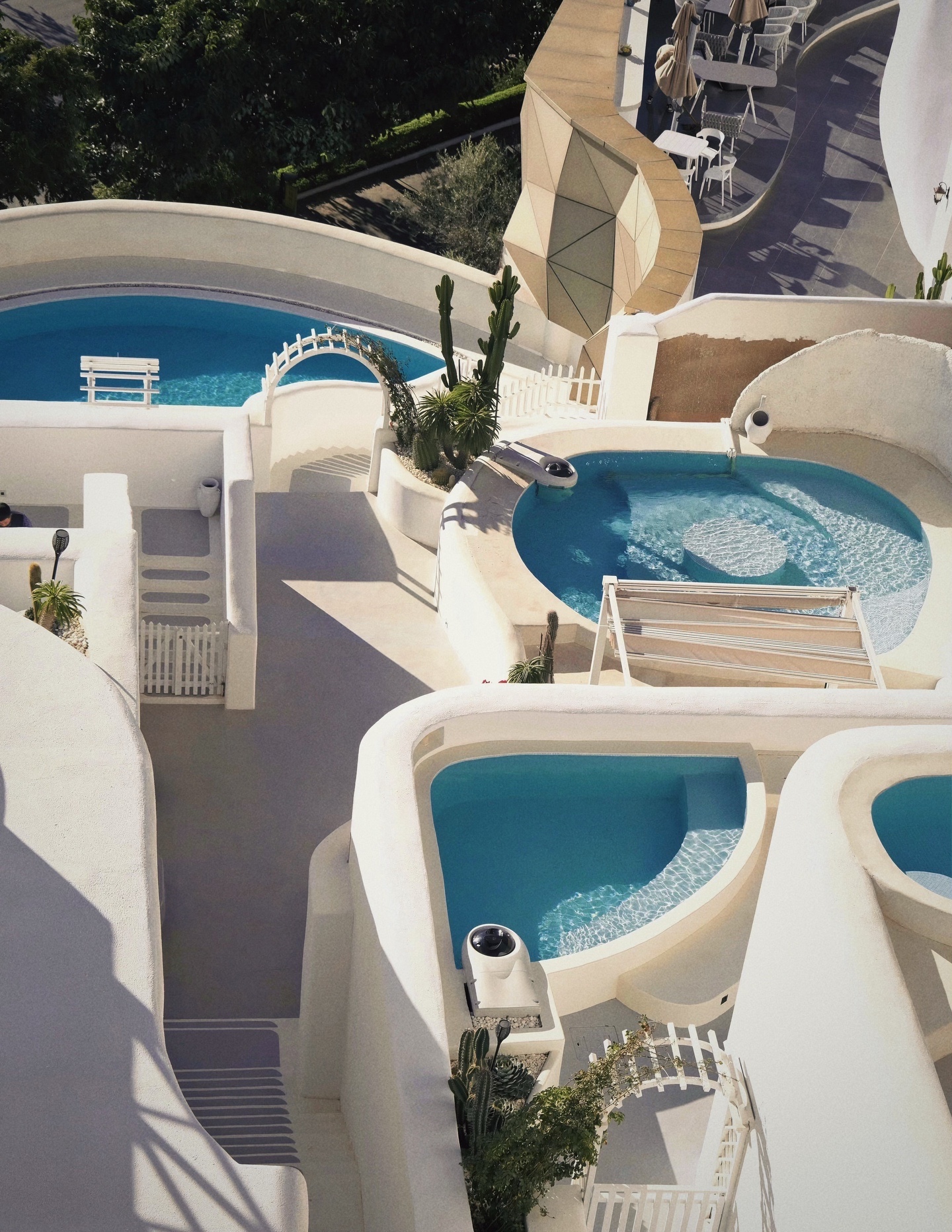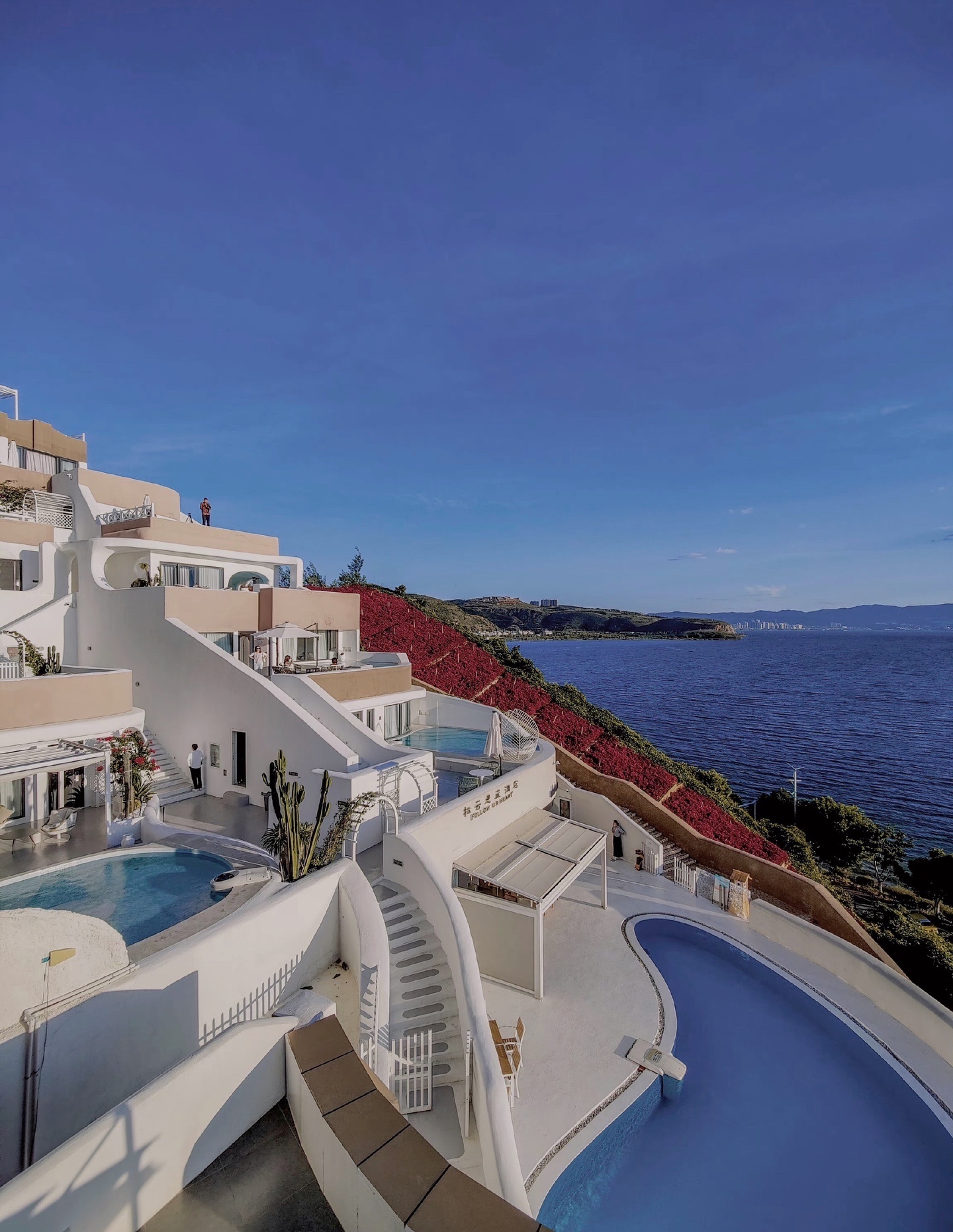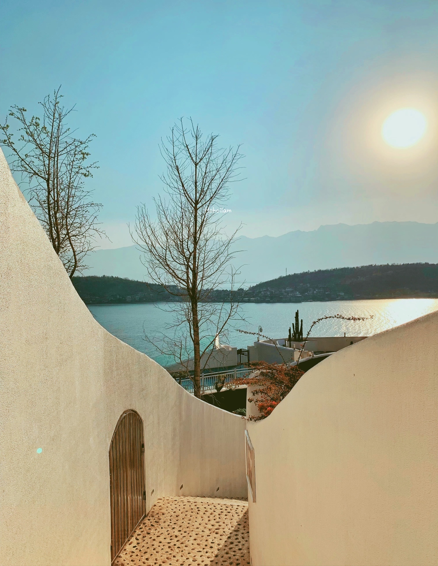 🌺圣托里尼的度假风,白墙+蓝门,还有波点图案的台阶,这是我认为最好出片的一个风格,拍风景也很美,很干净。这一片有几家酒店民宿,大理松云悬崖酒店大理理想