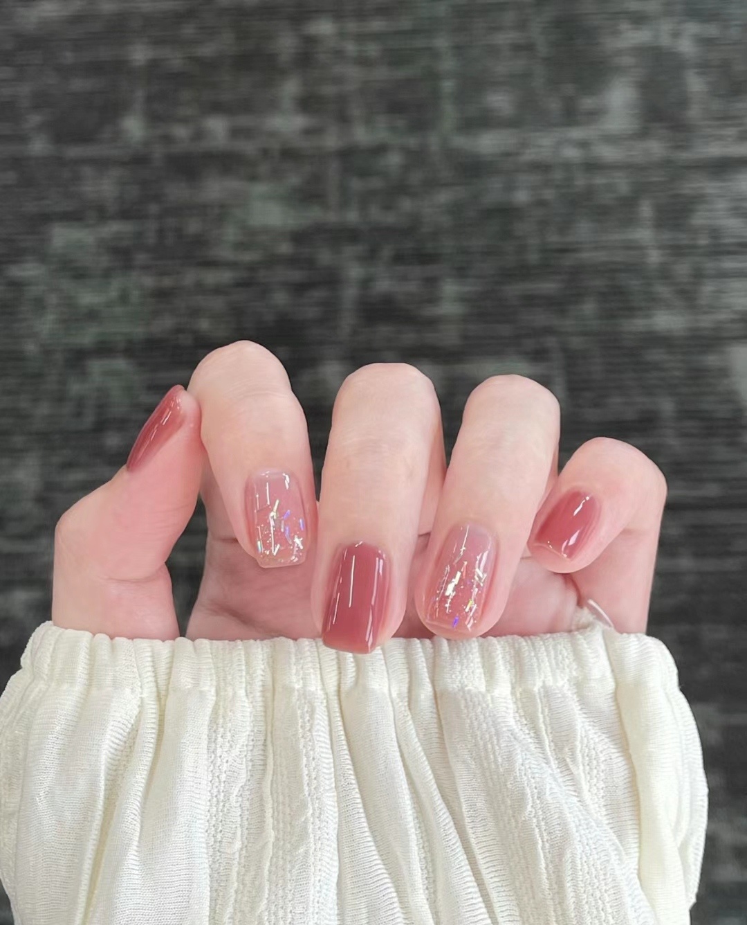 温柔少女美甲# 草莓豆沙色美甲