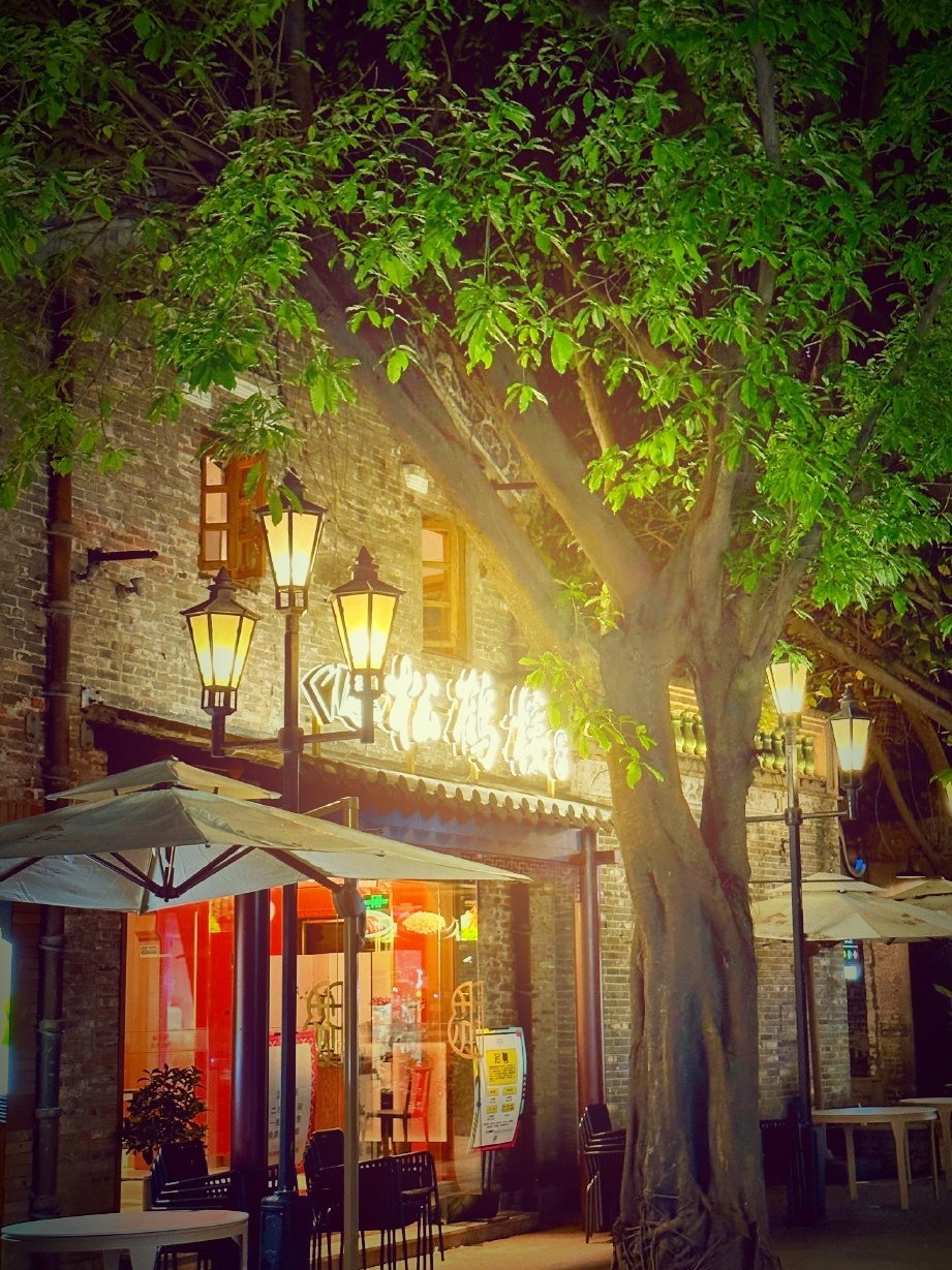夜游岭南古镇街,月华流淌退昼色,灯影约绰杂星光,凌晨归返已早晨。@MT小助手 @MT创作者学院