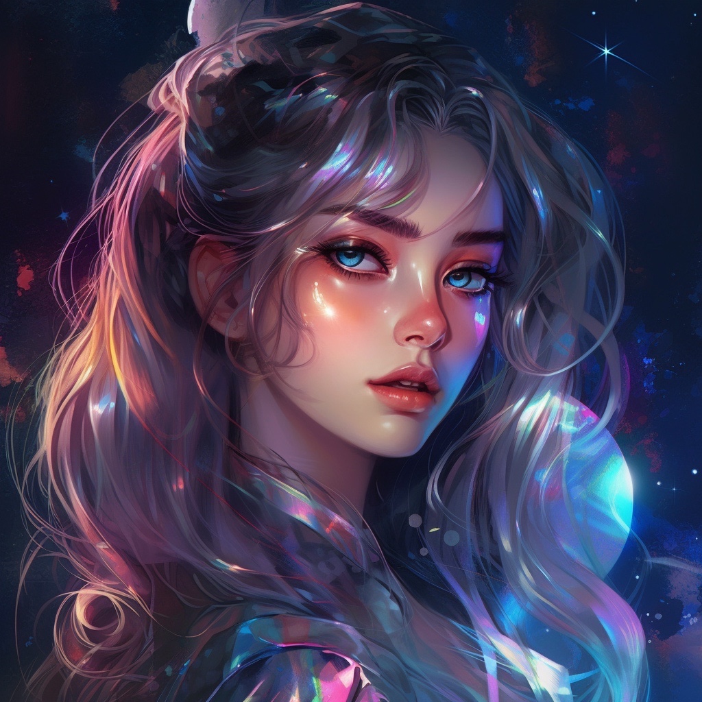 这期给大家分享的是镭射写实风格,其表达手法有参考美少女战士,加以镭射反光,3D塑造~