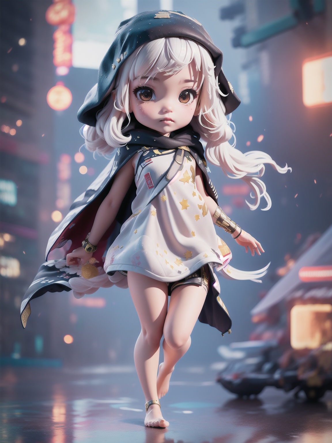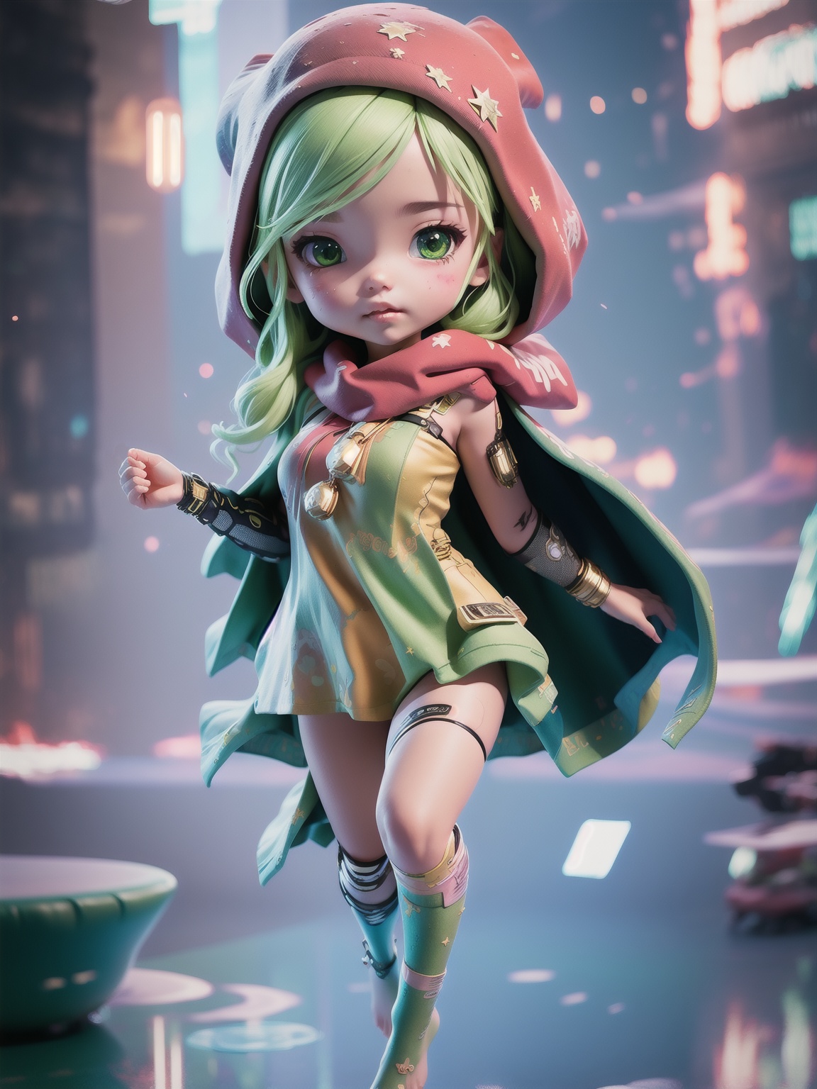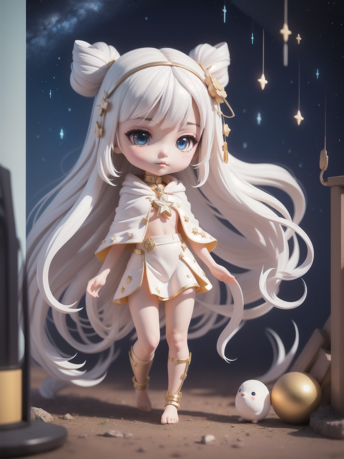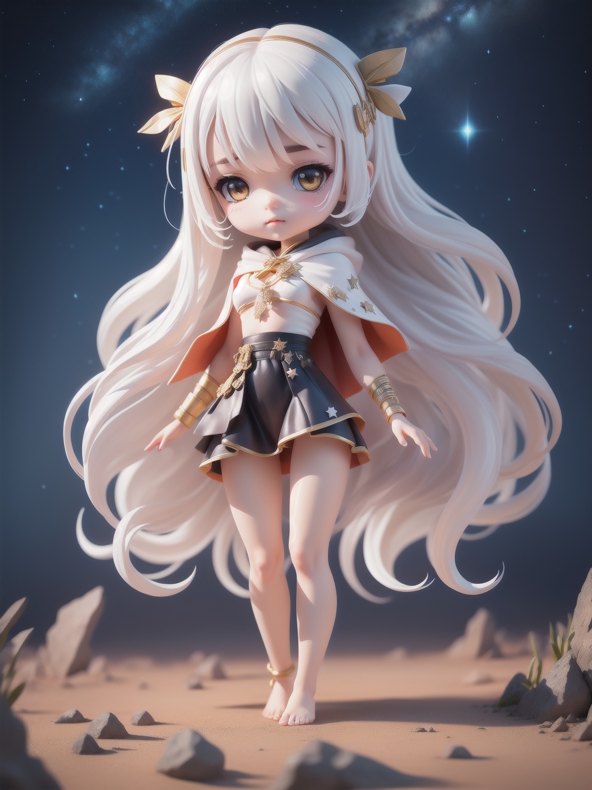 (8k, RAW photo, best quality, masterpiece:1.2),miniature, isometric, landscape,1girl,chibi,cute, star night, fire fly,